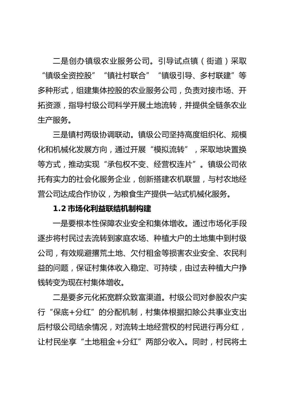 關(guān)于鄉(xiāng)村振興戰(zhàn)略下集體與農(nóng)民協(xié)同增收的調(diào)研報告近年來,濰坊市農(nóng)村生產(chǎn)力充分發(fā)展,農(nóng)業(yè)農(nóng)村發(fā)展正進入結(jié)構(gòu)升級、方式轉(zhuǎn)變、動力轉(zhuǎn)換的平臺期,而一家一戶分散經(jīng)營模式、耕地“細碎化”問題弊端逐步顯現(xiàn)[1],同時村莊空心化、人口老齡化、年輕勞動力流失等多重客觀因素相互影響,與現(xiàn)代農(nóng)業(yè)機械化、規(guī)?;?、標準化發(fā)展要求不相適應(yīng)的矛盾日益凸顯,束縛和制約了農(nóng)村生產(chǎn)力向更高層次發(fā)展[2]。農(nóng)村集體經(jīng)濟發(fā)展內(nèi)生動力不足、增收辦法不多、路徑不寬等問題普遍存在,亟須將“沉睡”的村集體資產(chǎn)進行盤活經(jīng)營,大力發(fā)展新型集體經(jīng)濟。1.實踐路徑:鄉(xiāng)村經(jīng)營轉(zhuǎn)型的機制探索...