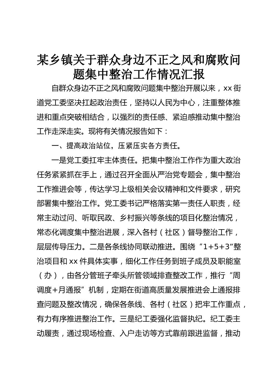 某鄉(xiāng)鎮(zhèn)關于群眾身邊不正之風和腐敗問題集中整治工作情況匯報