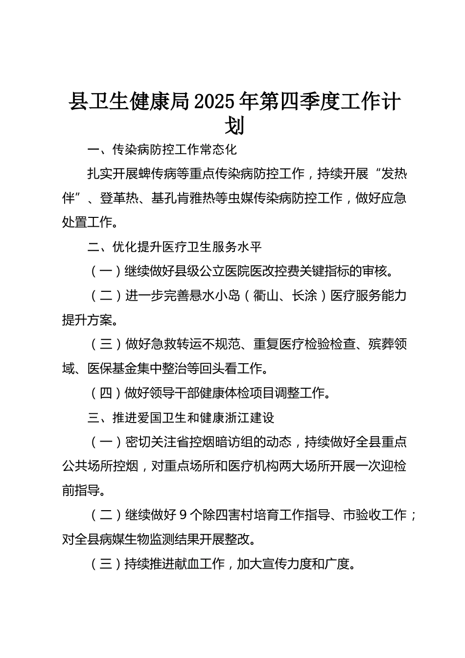 縣衛(wèi)生健康局2025年第四季度工作計劃