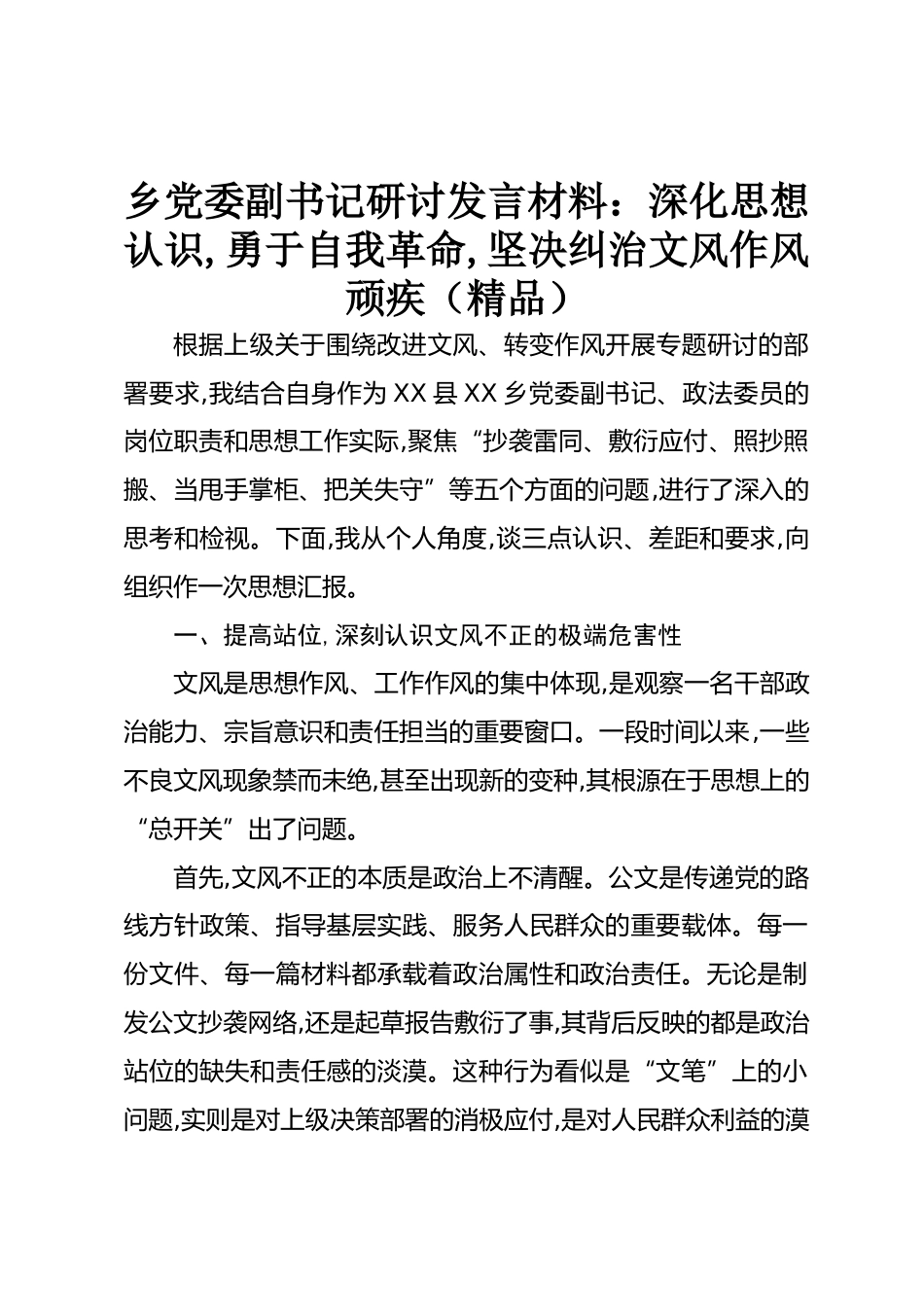 鄉(xiāng)黨委副書記研討發(fā)言材料:深化思想認(rèn)識,勇于自我革命,堅(jiān)決糾治文風(fēng)作風(fēng)頑疾(精品)