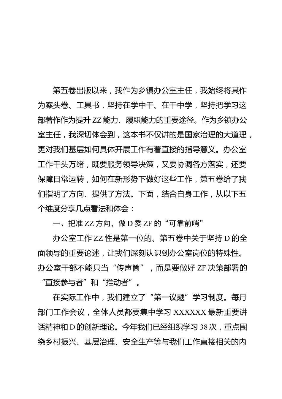 鄉(xiāng)鎮(zhèn)辦公室主任學(xué)習(xí)治國理論第五卷學(xué)習(xí)交流研討發(fā)言材料