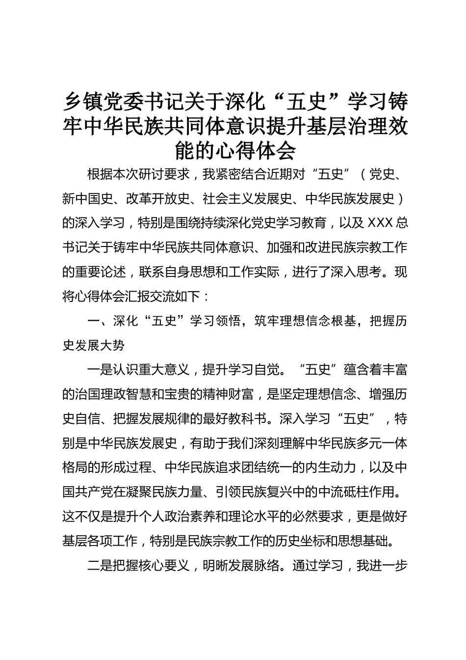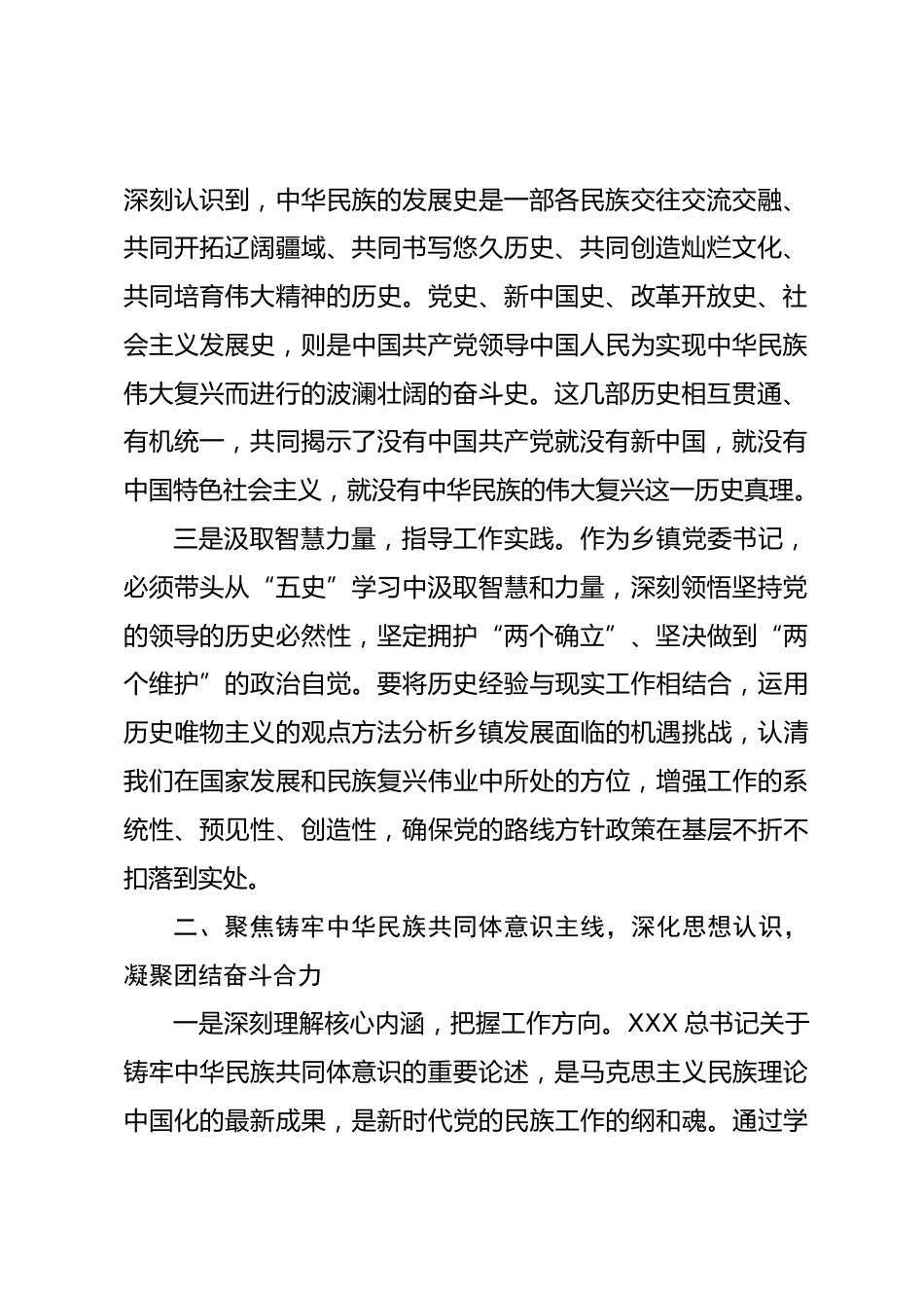 鄉(xiāng)鎮(zhèn)黨委書記關(guān)于深化“五史”學(xué)習(xí)鑄牢中華民族共同體意識提升基層治理效能的心得體會