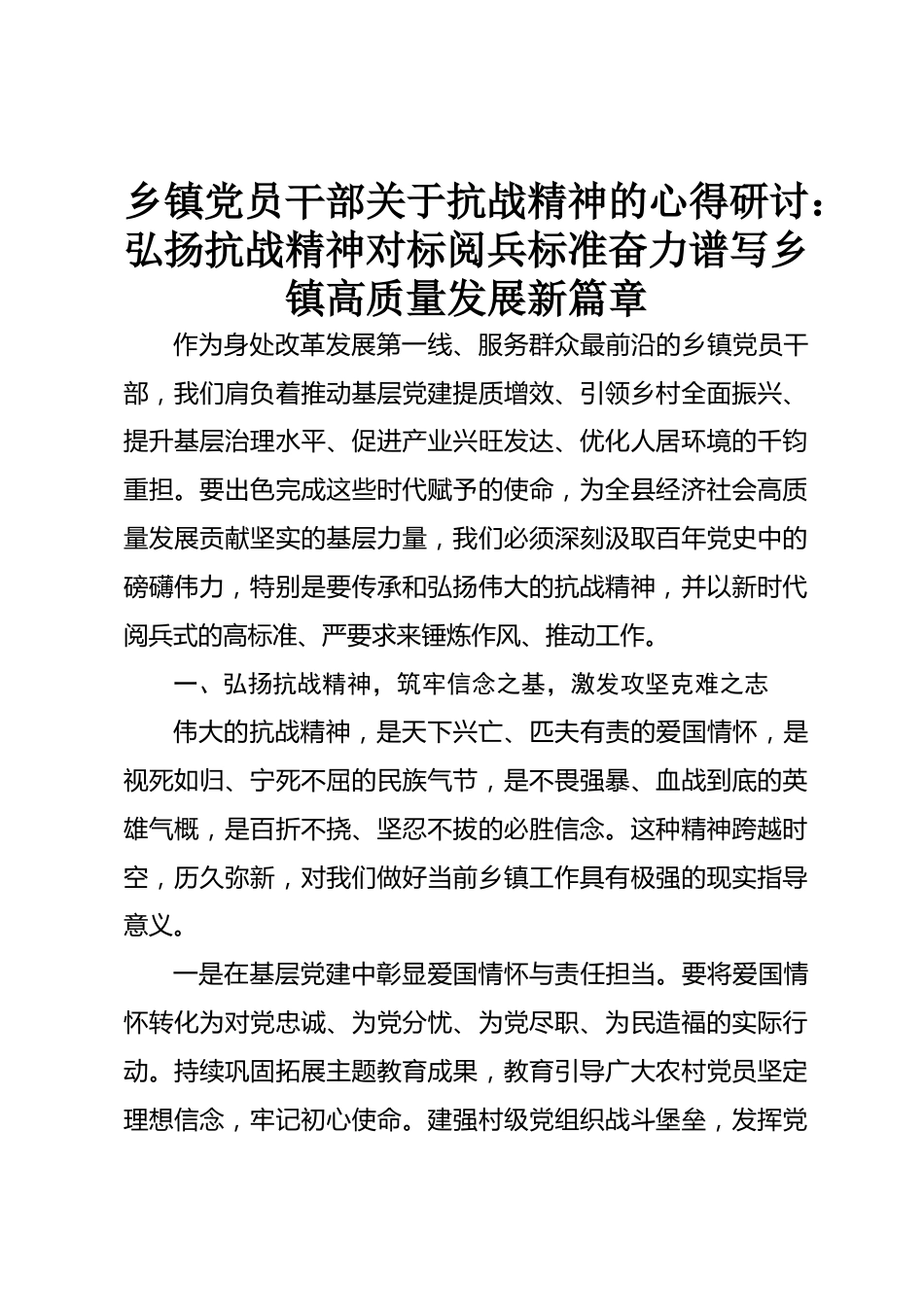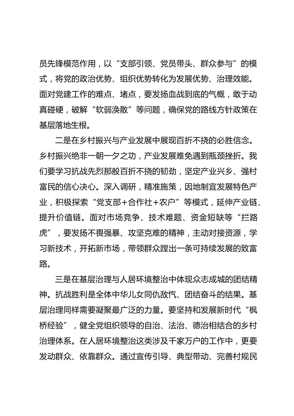 鄉(xiāng)鎮(zhèn)黨員干部關(guān)于抗戰(zhàn)精神的心得研討:弘揚(yáng)抗戰(zhàn)精神 對(duì)標(biāo)閱兵標(biāo)準(zhǔn) 奮力譜寫(xiě)鄉(xiāng)鎮(zhèn)高質(zhì)量發(fā)展新篇章