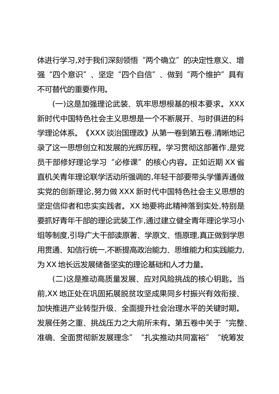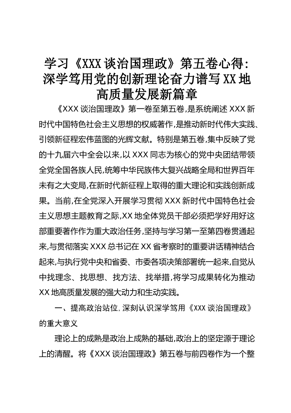 學(xué)習(xí)《習(xí)近平談治國(guó)理政》第五卷心得:深學(xué)篤用黨的創(chuàng)新理論奮力譜寫(xiě)XX地高質(zhì)量發(fā)展新篇章