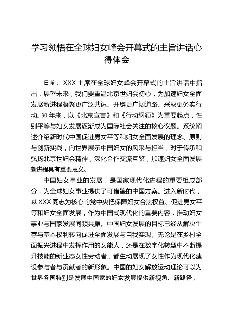 學習領悟在全球婦女峰會開幕式的主旨講話心得體會