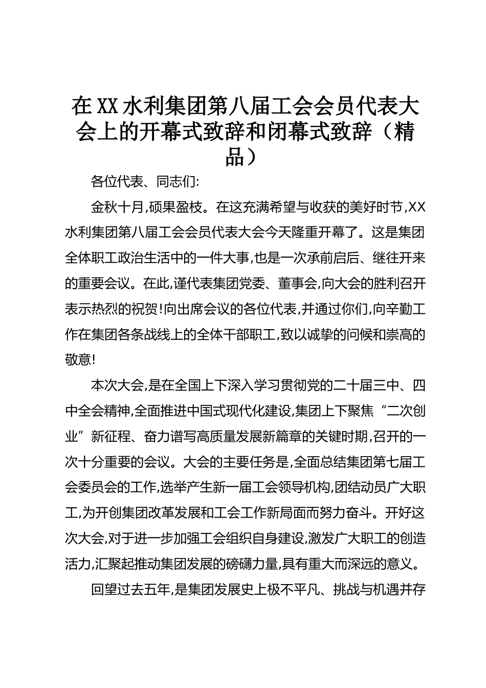在XX水利集團第八屆工會會員代表大會上的開幕式致辭和閉幕式致辭(精品)