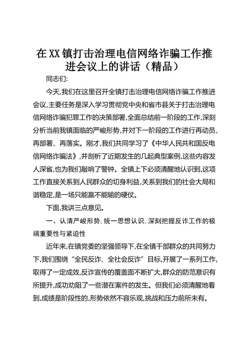在XX鎮(zhèn)打擊治理電信網(wǎng)絡(luò)詐騙工作推進(jìn)會(huì)議上的講話(精品)