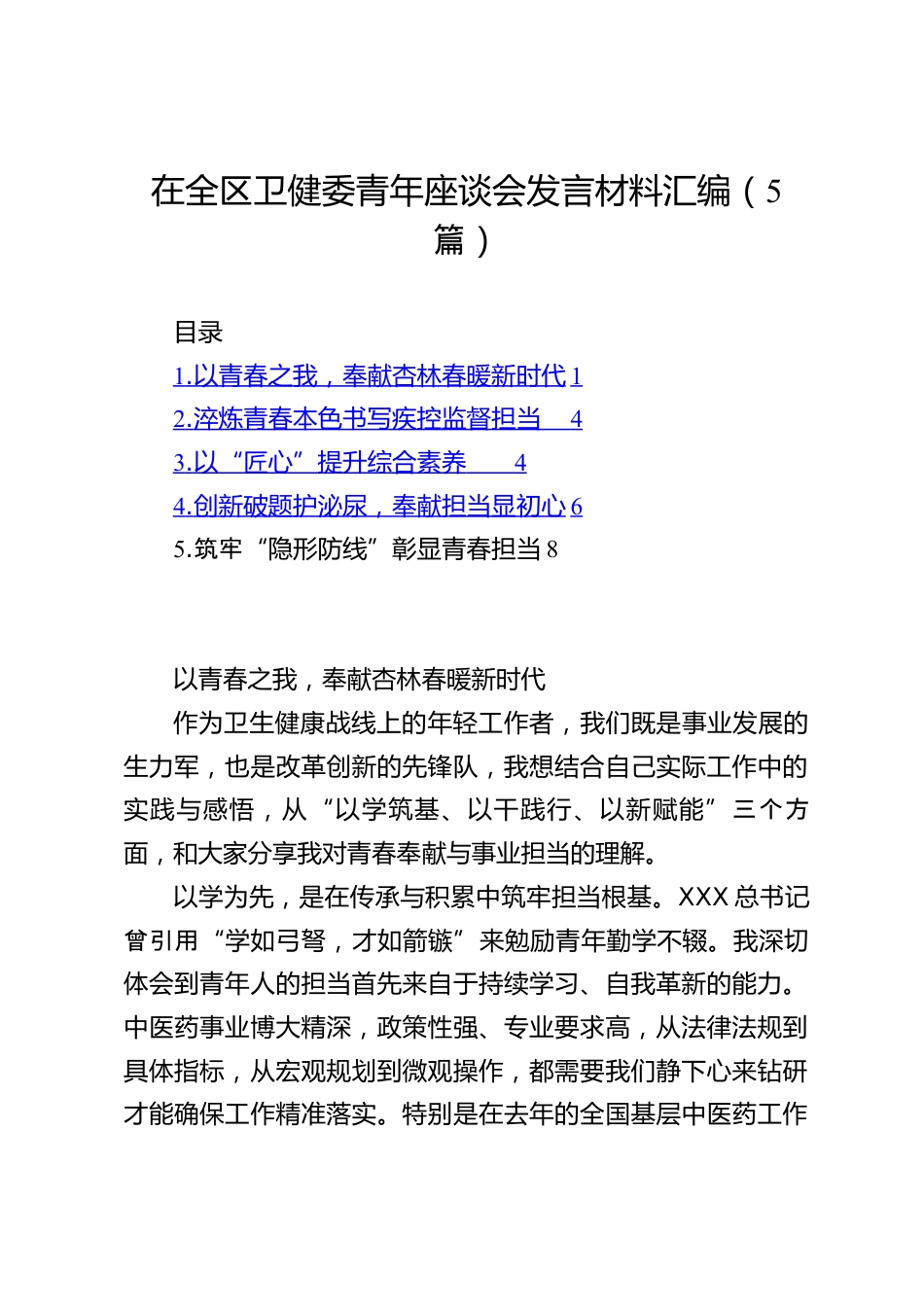 在全區(qū)衛(wèi)健委青年座談會發(fā)言材料匯編(5篇)