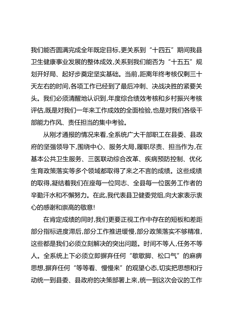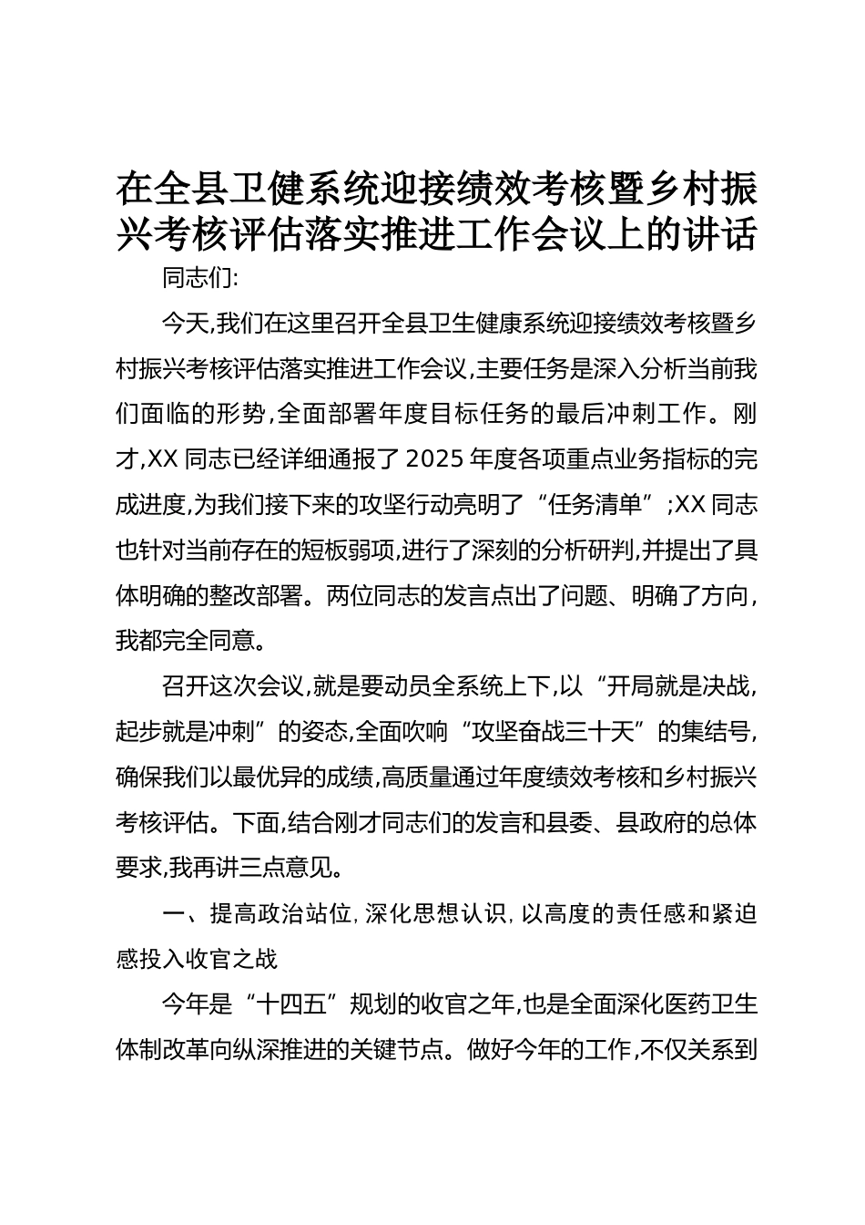 在全縣衛(wèi)健系統(tǒng)迎接績效考核暨鄉(xiāng)村振興考核評估落實推進(jìn)工作會議上的講話