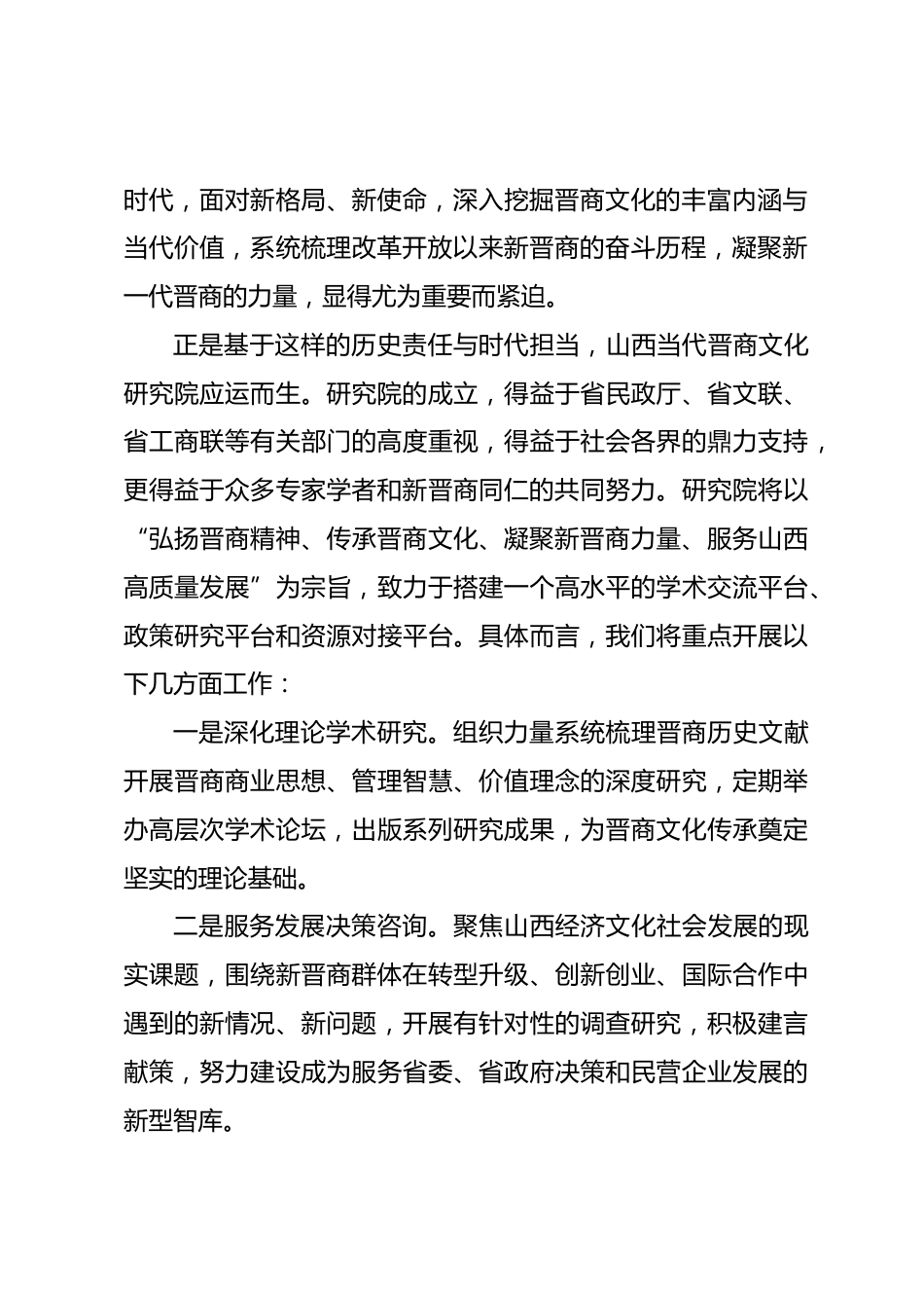 在山西當(dāng)代晉商文化研究院成立大會上的致辭
