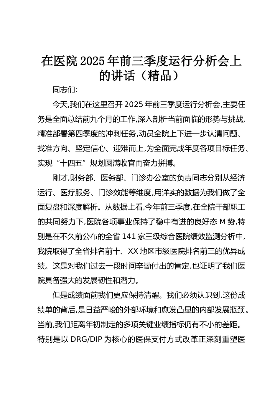 在醫(yī)院2025年前三季度運行分析會上的講話(精品)