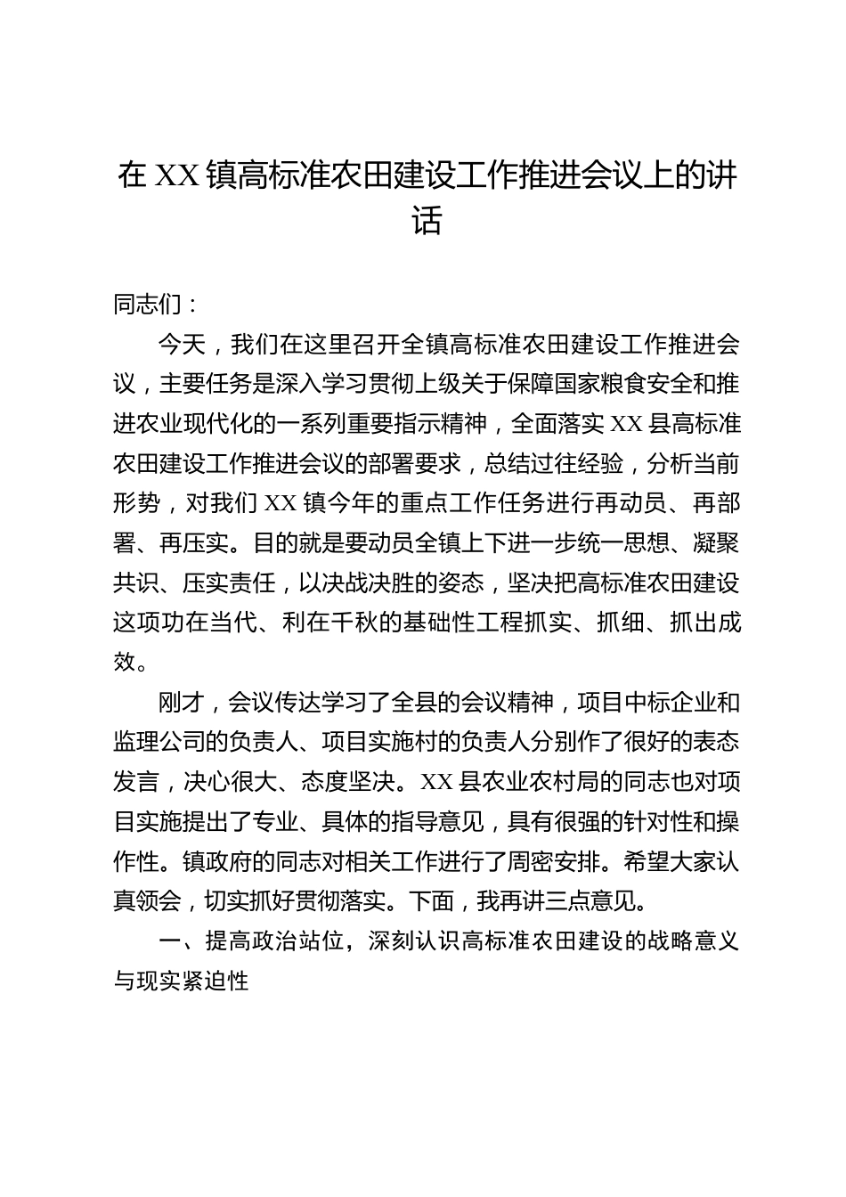 在鎮(zhèn)高標(biāo)準(zhǔn)農(nóng)田建設(shè)工作推進(jìn)會議上的講話