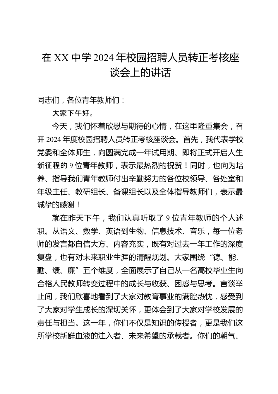 在中學2024年校園招聘人員轉正考核座談會上的講話