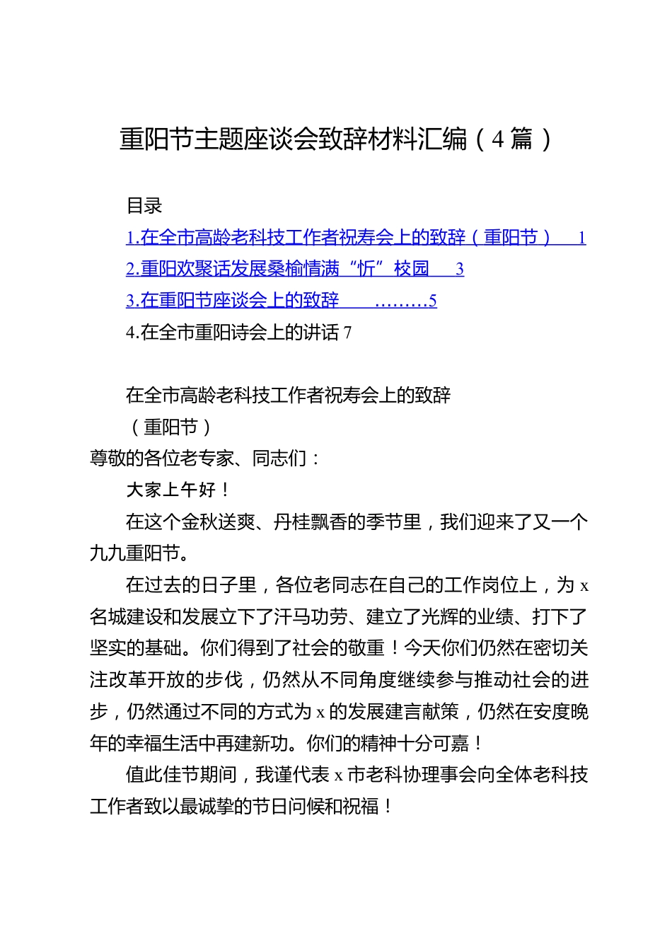 重陽節(jié)主題座談會致辭材料匯編(4篇)