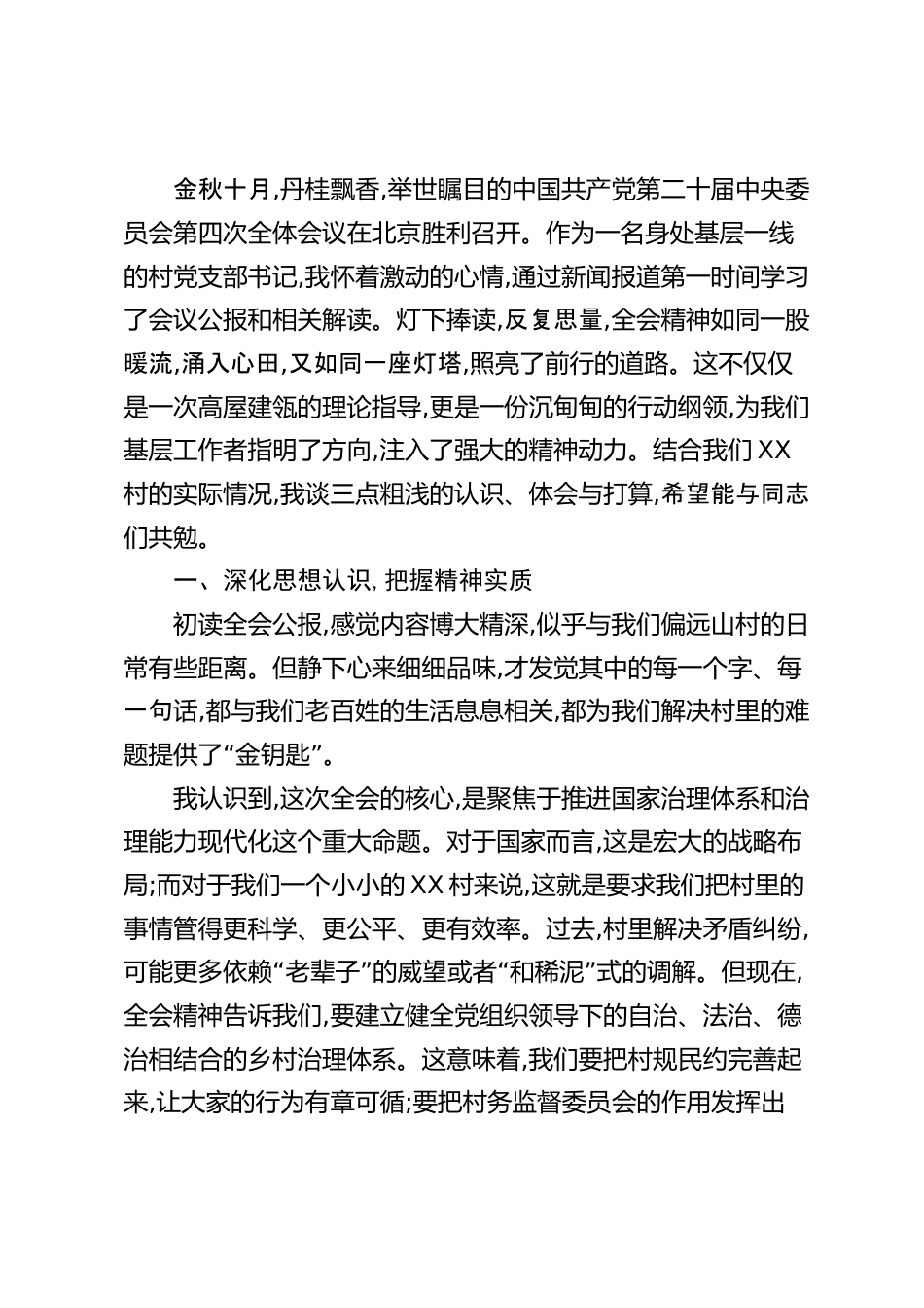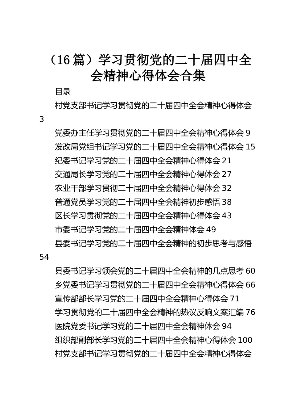(16篇)學(xué)習(xí)貫徹黨的二十屆四中全會精神心得體會合集目錄村黨支部書記學(xué)習(xí)貫徹黨的二十屆四中全會精神心得體會3黨委辦主任學(xué)習(xí)貫徹黨的二十屆四中全會精神心得體會9發(fā)改局黨組書記學(xué)習(xí)黨的二十屆四中全會精神心得體會15紀(jì)委書記學(xué)習(xí)黨的二十屆四中全會精神心得體會21交通局長學(xué)習(xí)黨的二十屆四中全會精神心得體會27農(nóng)業(yè)干部學(xué)習(xí)貫徹二十屆四中全會精神心得體會32普通黨員學(xué)習(xí)黨的二十屆四中全會精神初步感悟38區(qū)長學(xué)習(xí)貫徹黨的二十屆四中全會精神心得體會43市委書記學(xué)習(xí)黨的二十屆四中全會精神體會49縣委書記學(xué)習(xí)黨的二十屆四中全會精神的初步思考與感悟54縣委書記學(xué)習(xí)領(lǐng)...
