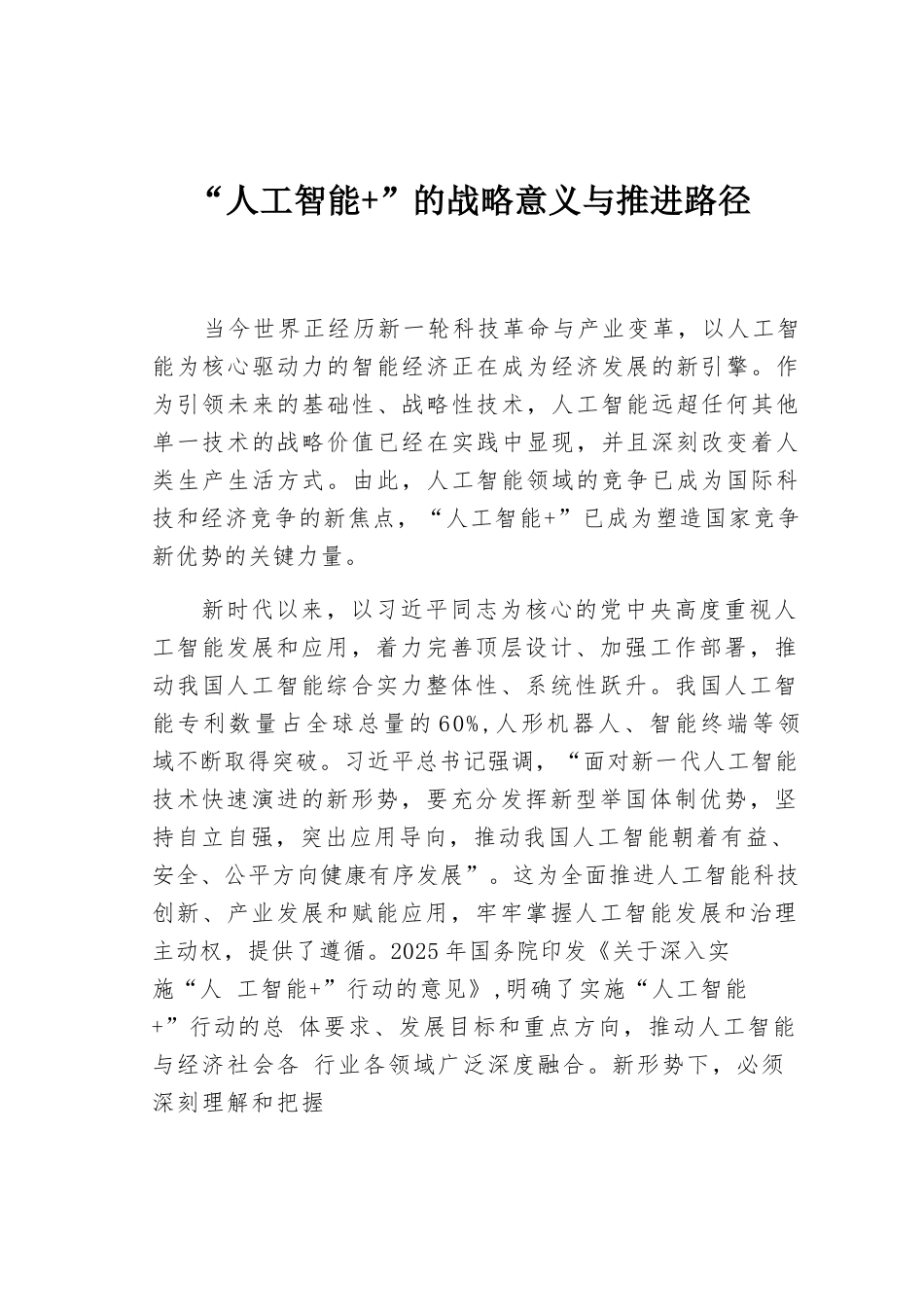 “人工智能+”的戰(zhàn)略意義與推進(jìn)路徑VIP免費(fèi)