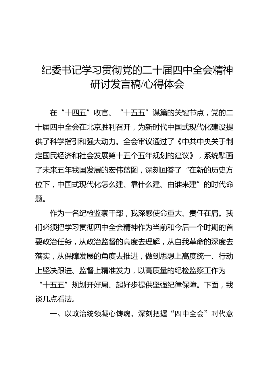 2025紀(jì)委書記學(xué)習(xí)貫徹黨的二十屆四中全會精神研討發(fā)言稿心得體會優(yōu)質(zhì)