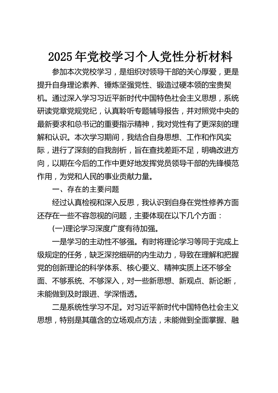 2025年黨校學(xué)習(xí)個(gè)人黨性分析材料