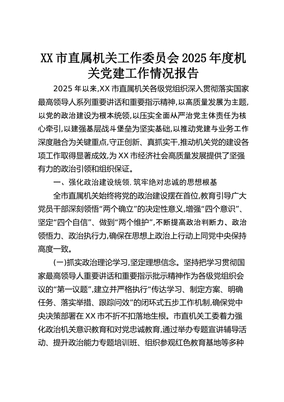 XX市直屬機(jī)關(guān)工作委員會(huì)2025年度機(jī)關(guān)黨建工作情況報(bào)告VIP免費(fèi)