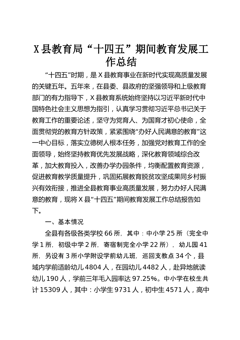 X縣教育局“十四五”期間教育發(fā)展工作總結(jié)VIP免費(fèi)