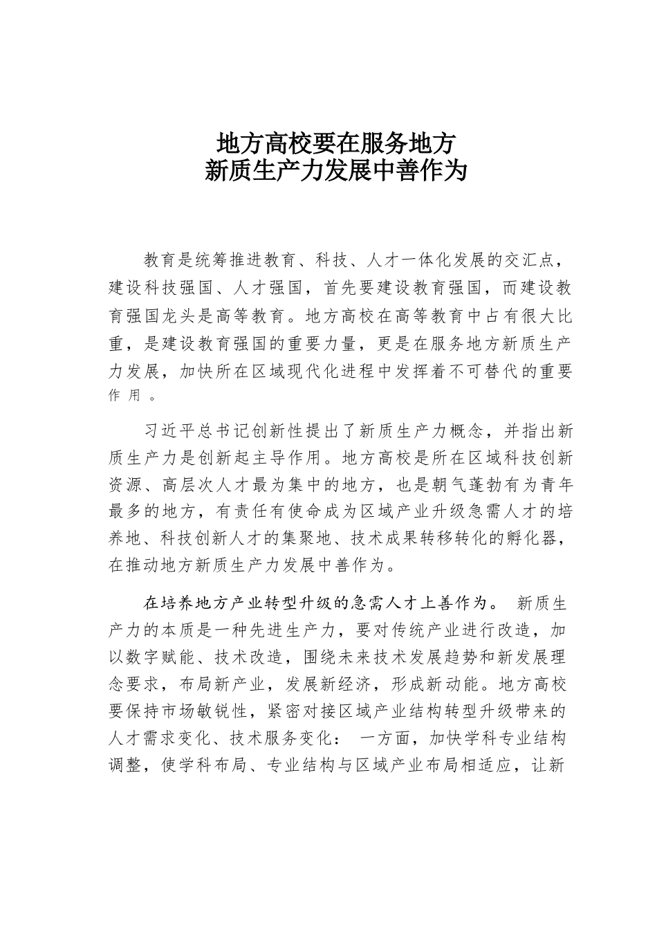 地方高校要在服務(wù)地方新質(zhì)生產(chǎn)力發(fā)展中善作為