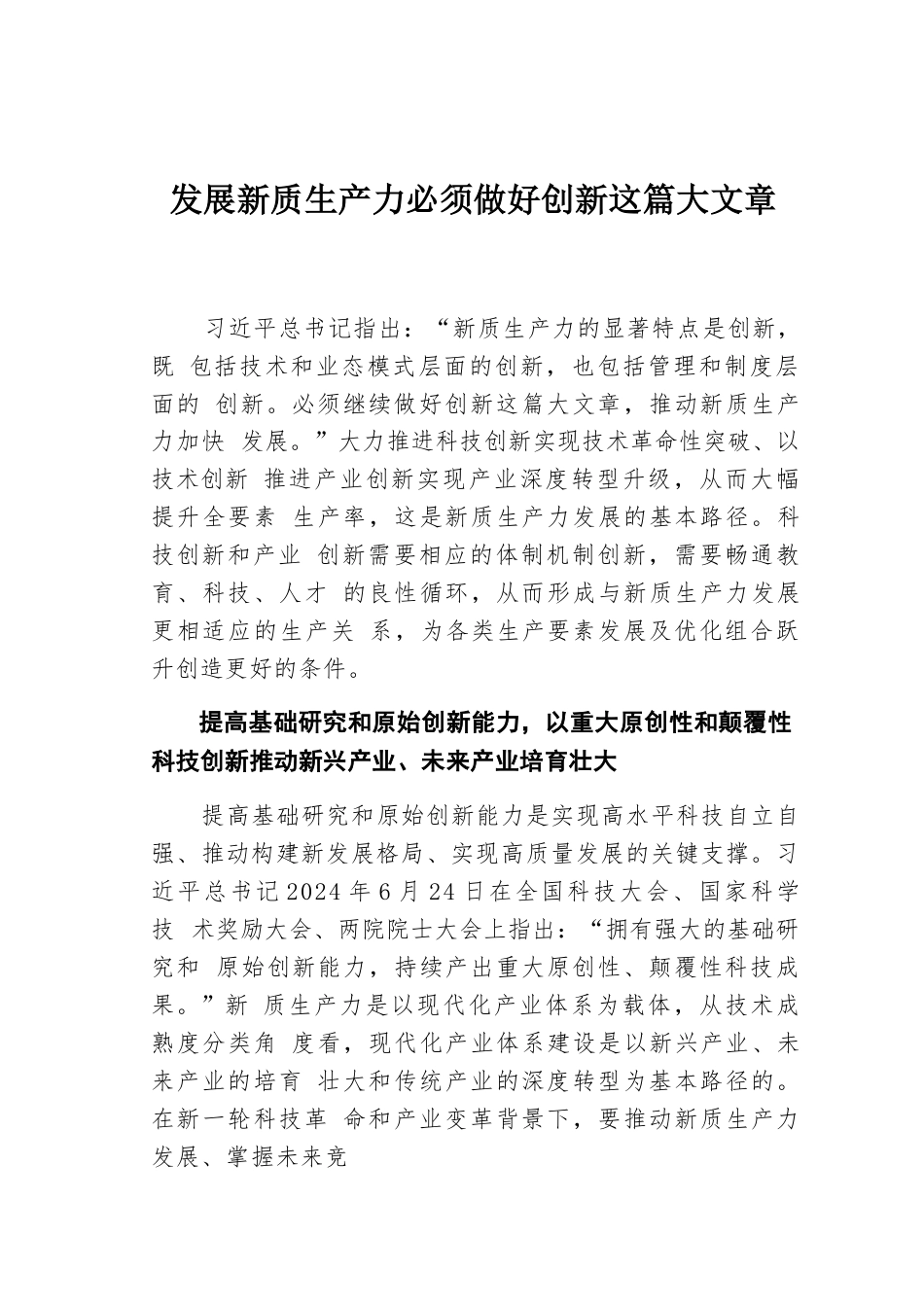 發(fā)展新質(zhì)生產(chǎn)力必須做好創(chuàng)新這篇大文章