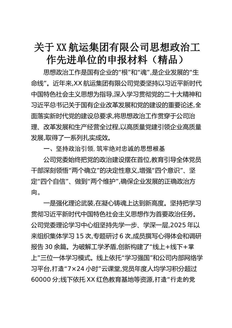關(guān)于XX航運(yùn)集團(tuán)有限公司思想政治工作先進(jìn)單位的申報(bào)材料(精品)