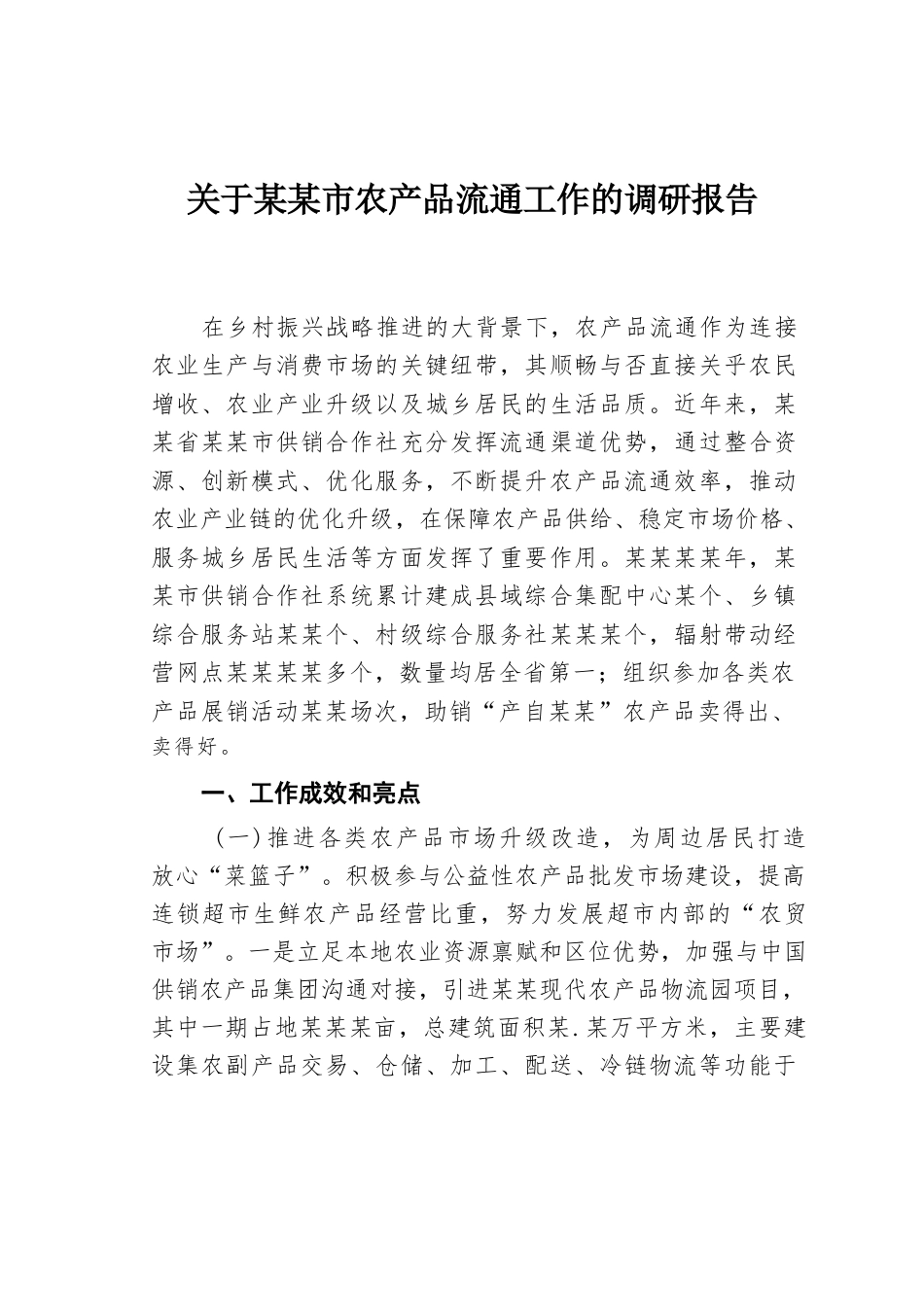 關(guān)于某某市農(nóng)產(chǎn)品流通工作的調(diào)研報(bào)告VIP免費(fèi)