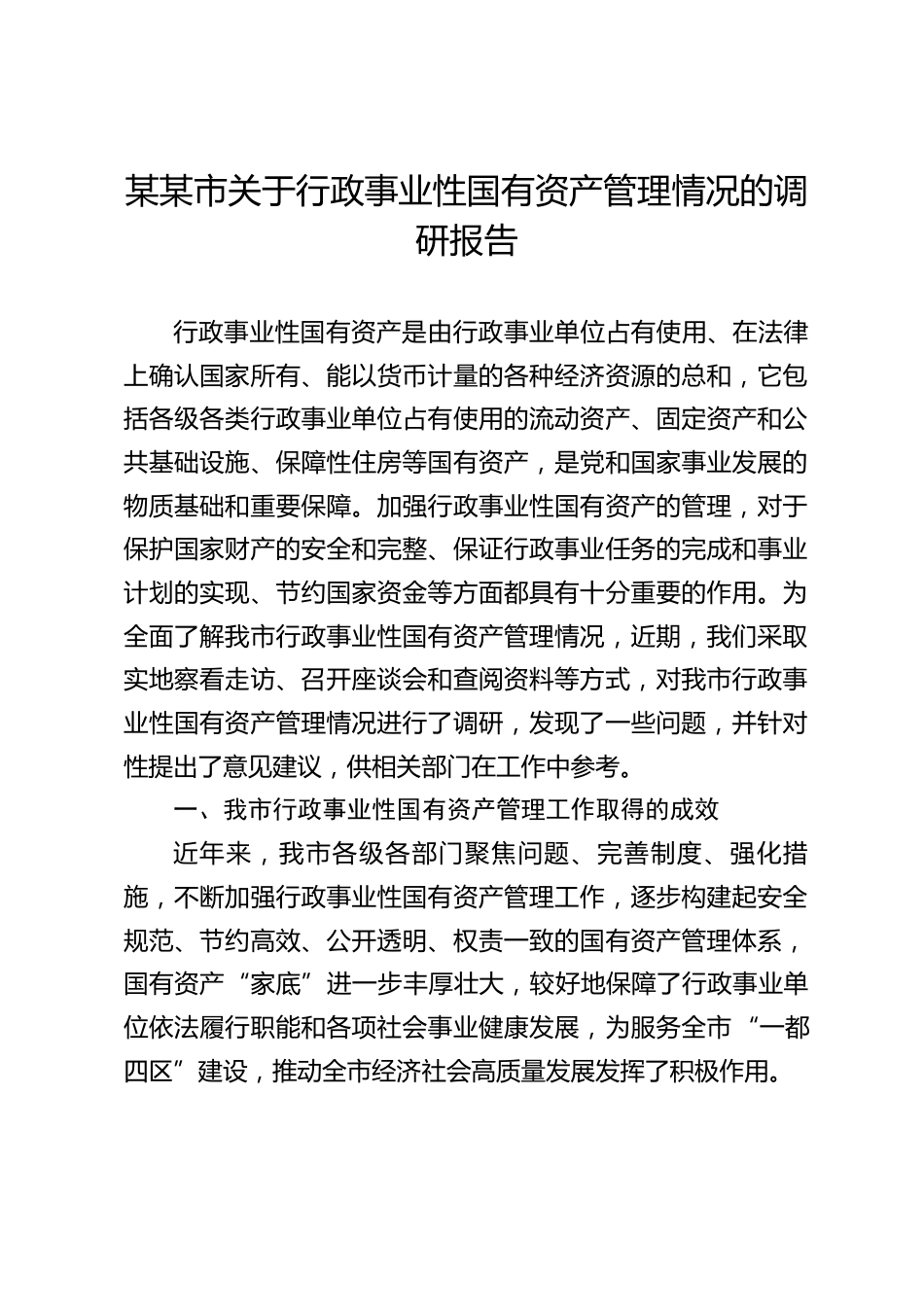 某某市關(guān)于行政事業(yè)性國(guó)有資產(chǎn)管理情況的調(diào)研報(bào)告VIP免費(fèi)