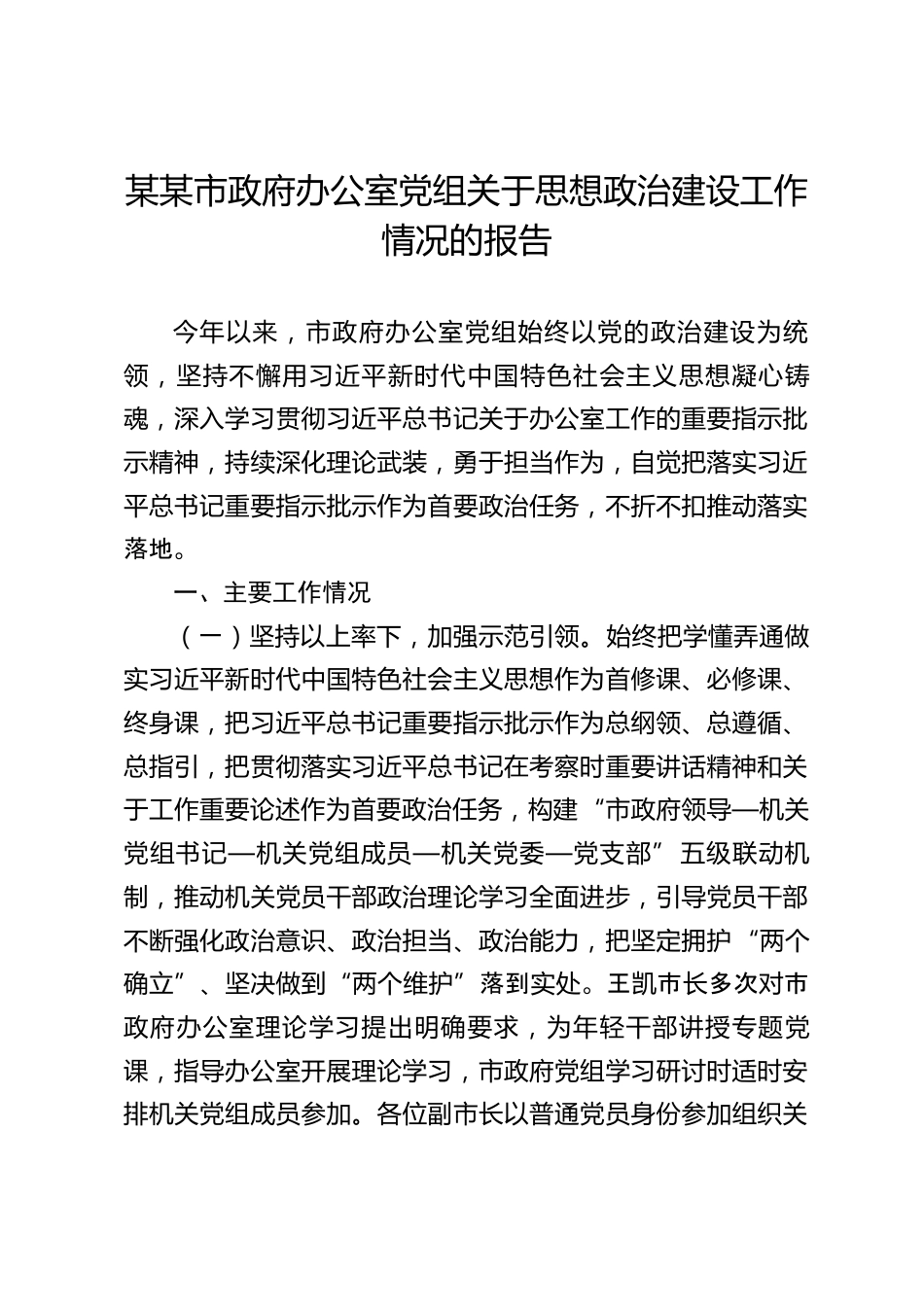 某某市政府辦公室黨組關(guān)于思想政治建設(shè)工作情況的報(bào)告