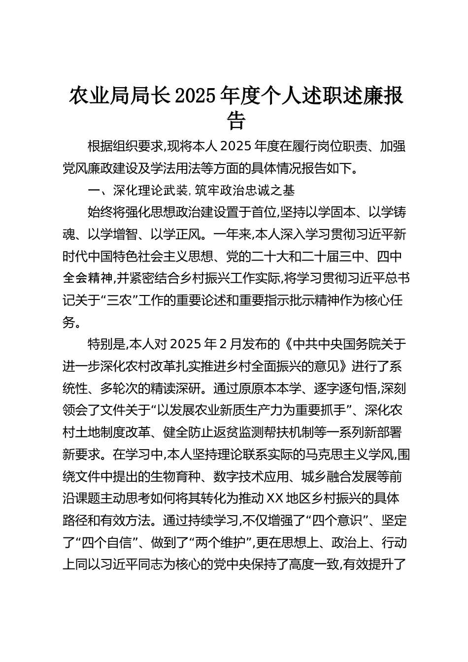 農(nóng)業(yè)局局長(zhǎng)2025年度個(gè)人述職述廉報(bào)告