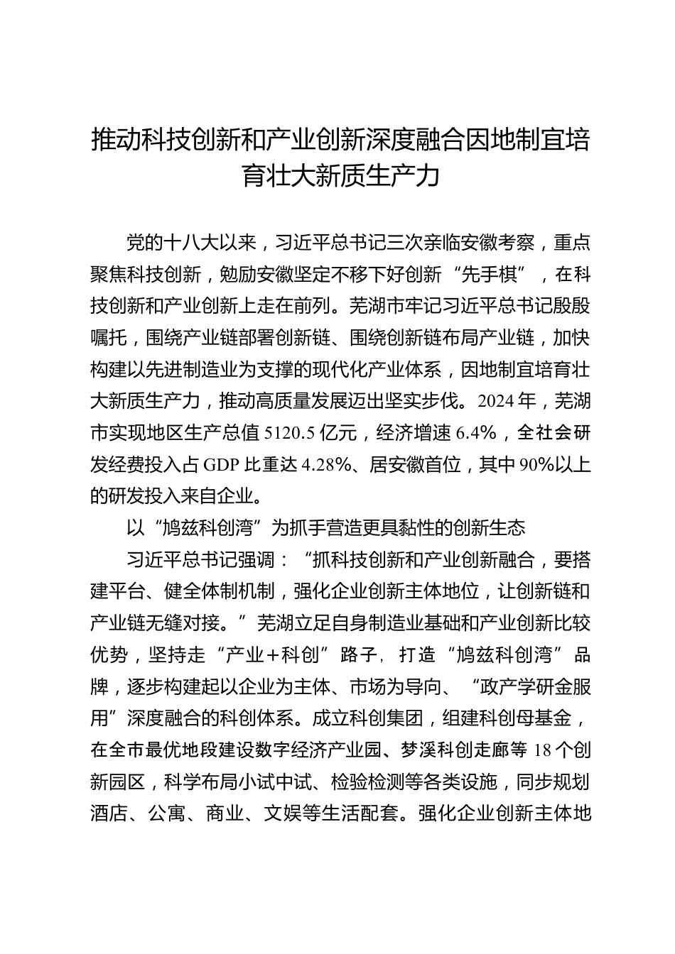 推動(dòng)科技創(chuàng)新和產(chǎn)業(yè)創(chuàng)新深度融合因地制宜培育壯大新質(zhì)生產(chǎn)力