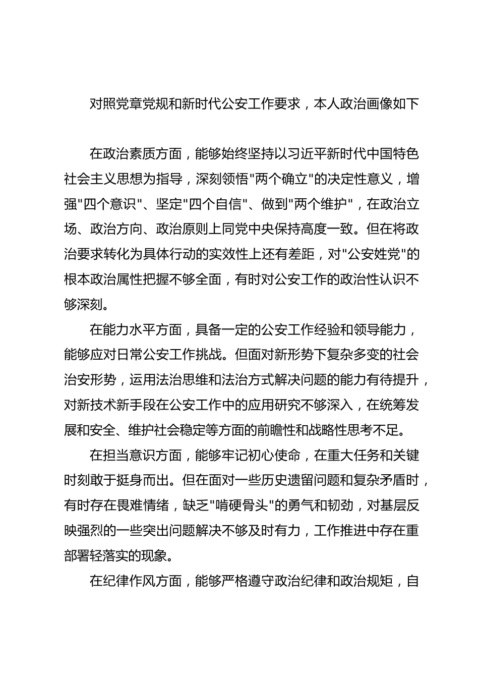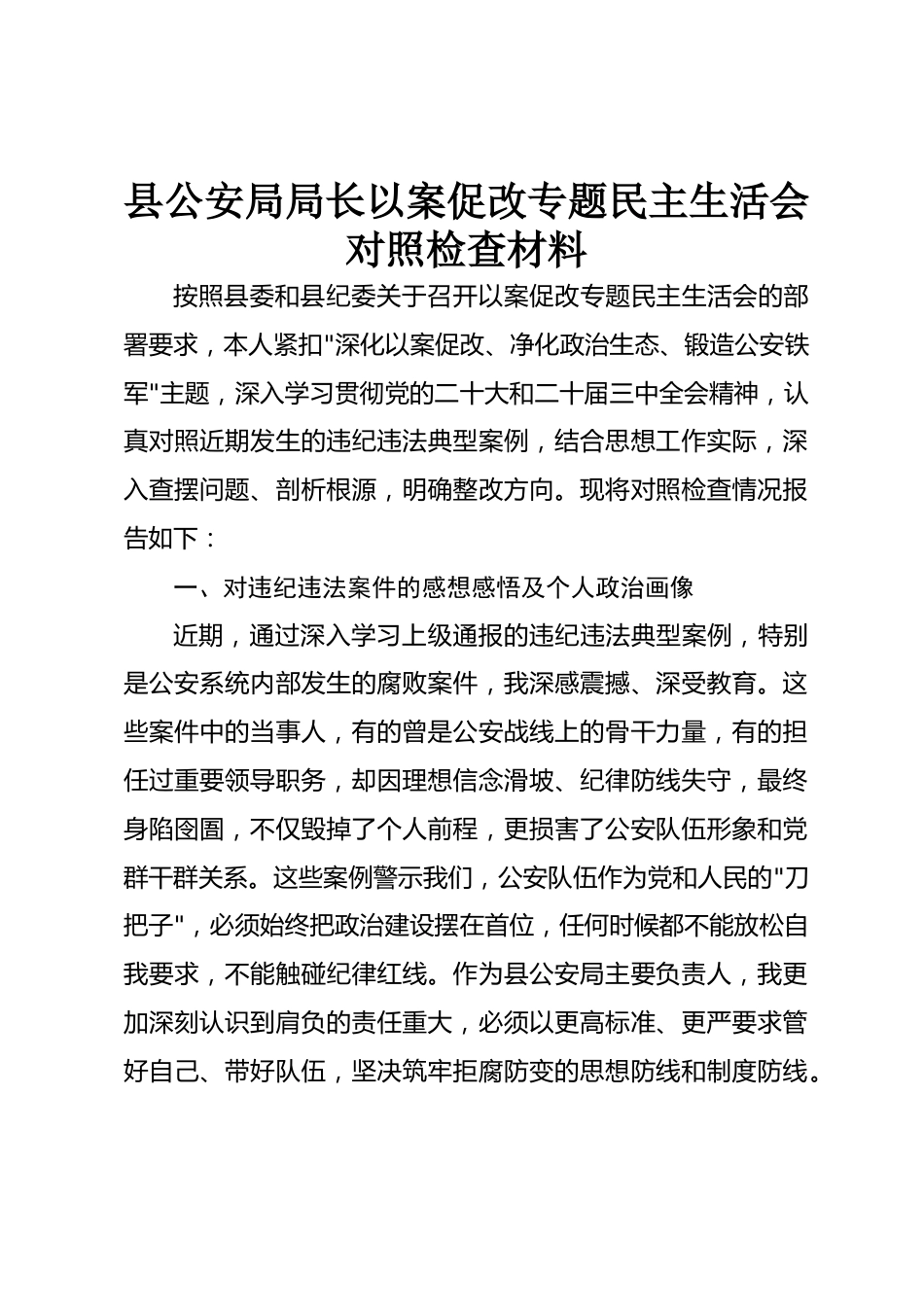 縣公安局局長以案促改專題民主生活會對照檢查材料