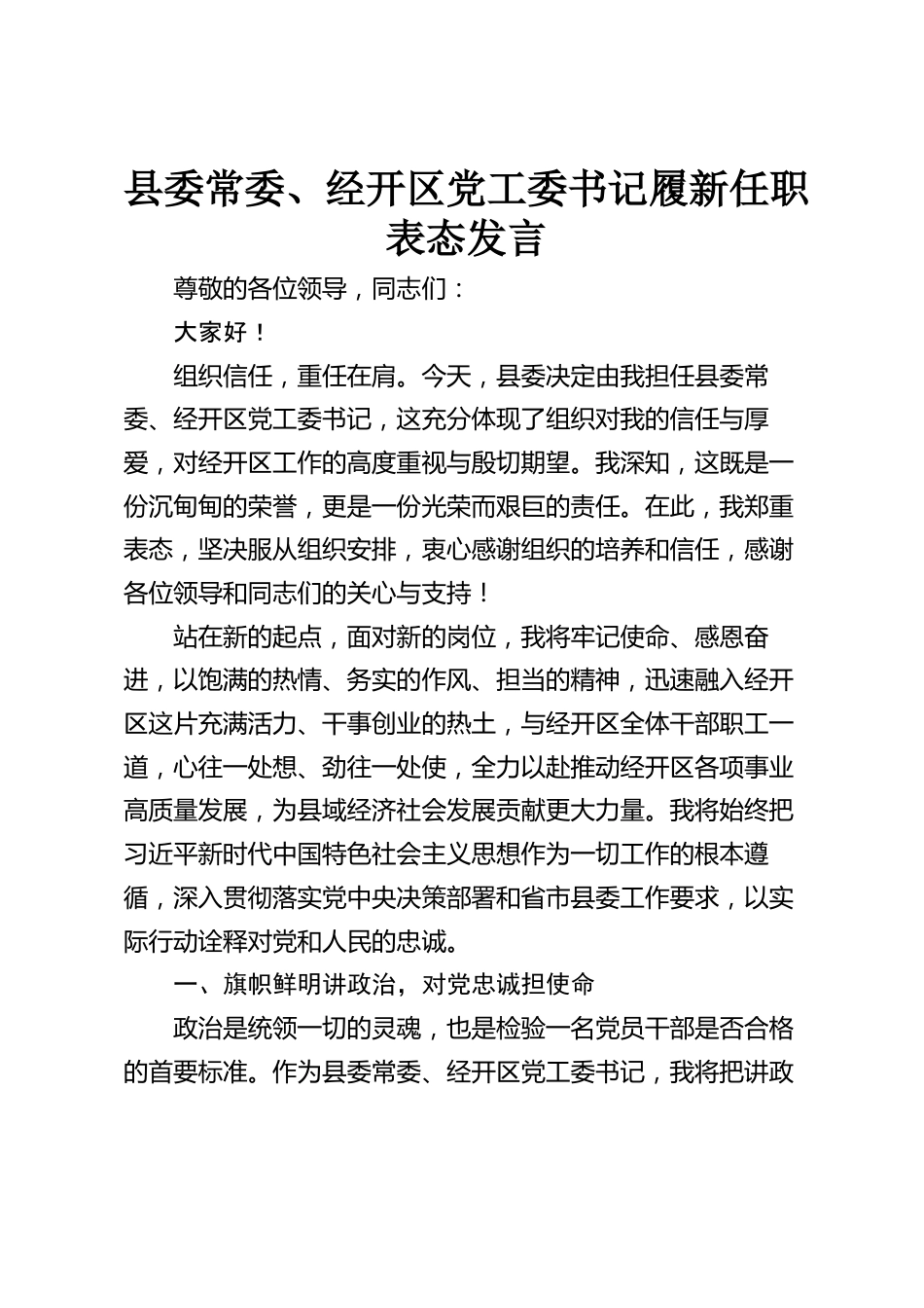 縣委常委、經(jīng)開(kāi)區(qū)黨工委書記履新任職表態(tài)發(fā)言