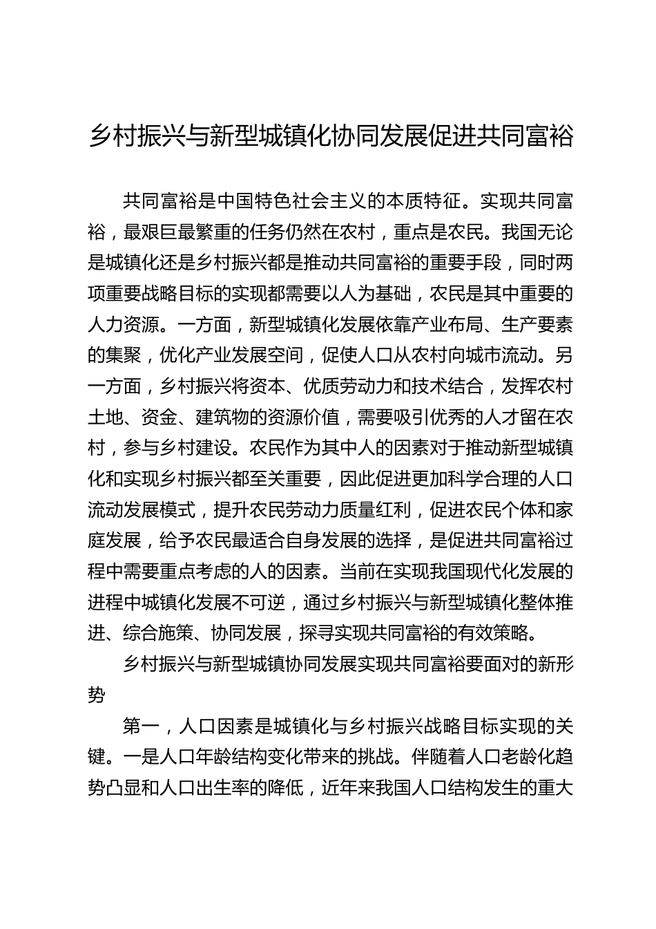 鄉(xiāng)村振興與新型城鎮(zhèn)化協(xié)同發(fā)展促進(jìn)共同富裕