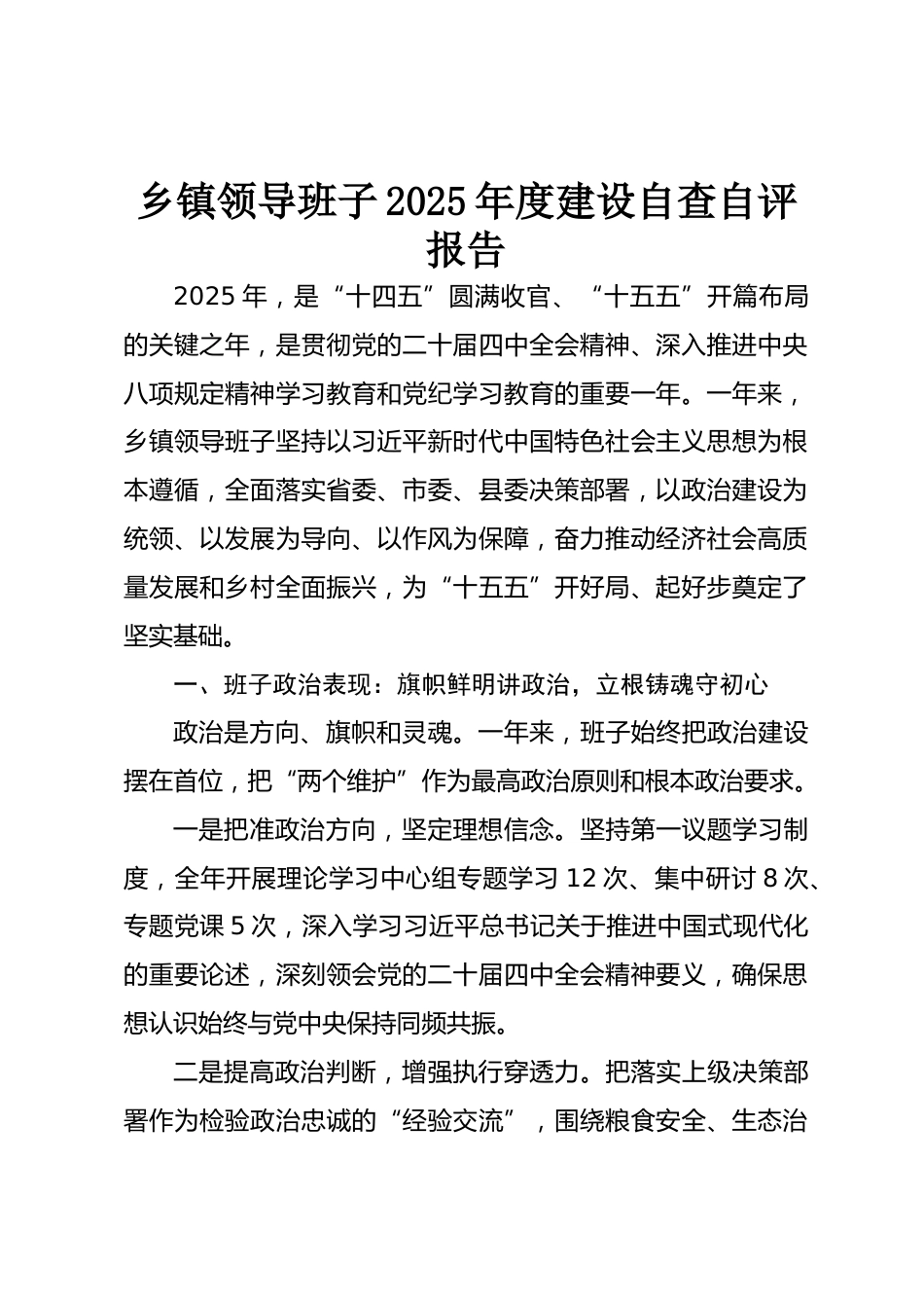 鄉(xiāng)鎮(zhèn)領(lǐng)導(dǎo)班子2025年度建設(shè)自查自評(píng)報(bào)告
