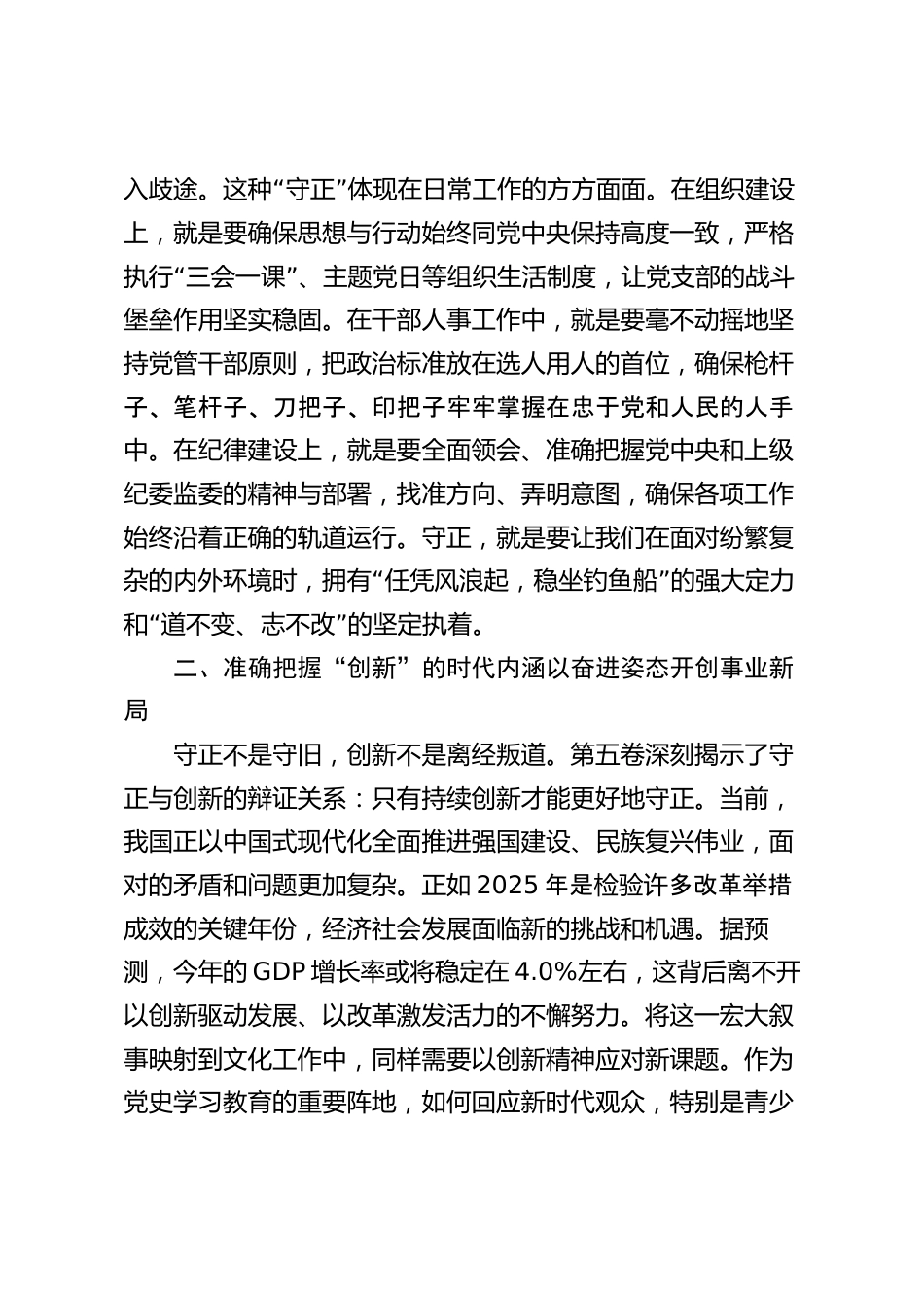 心得體會(huì):把“守正創(chuàng)新”這一科學(xué)方法論內(nèi)化于心、外化于行《習(xí)近平談治國(guó)理政》第五卷系統(tǒng)收錄了習(xí)近平總書(shū)記在2022年5月至2024年12月期的重要著作,是克思主間馬義中國(guó)化時(shí)代化的最新成果,為我們奮進(jìn)新征程、建功新時(shí)代提供了根本遵循。通過(guò)近期的深入學(xué)習(xí)和研討,我深刻體會(huì)到,“”貫穿全書(shū)的守正創(chuàng)新這一重要思想方法,不僅是治國(guó)理政的精髓要義,更是我們作為新時(shí)代文化工作者,在具體實(shí)踐中破“”解難題、開(kāi)創(chuàng)新局的金鑰匙。身處2025年一全面深化改這革方案的攻堅(jiān)落實(shí)之年,結(jié)合我所在的*黨史館工作實(shí)際,我愈發(fā)感到將這一思想方法轉(zhuǎn)化為行動(dòng)自覺(jué)的極端重要性。...