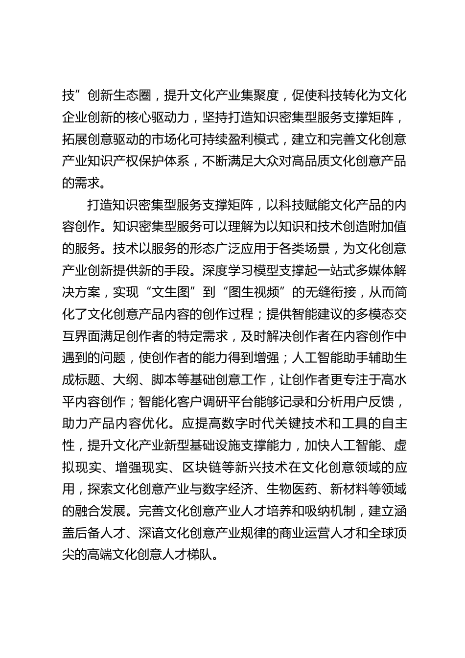 以科技賦能文化創(chuàng)意產(chǎn)業(yè)高質(zhì)量發(fā)展近年來,以人工智能為代表的新技術(shù)深度應(yīng)用于文化領(lǐng)域,催生出眾多體驗(yàn)式應(yīng)用場景,受到消費(fèi)者熱烈追捧,進(jìn)一步激發(fā)文化產(chǎn)業(yè)的業(yè)態(tài)創(chuàng)新??萍际俏幕ㄔO(shè)的驅(qū)動(dòng)力,文化和科技的融合為文化產(chǎn)業(yè)高質(zhì)量發(fā)展注入了新的活力與勢能。習(xí)近平總書記強(qiáng)調(diào):“文化與科技相生相促。要探索文化和科技融合的有效機(jī)制,用互聯(lián)網(wǎng)思維和信息技術(shù)改進(jìn)文化創(chuàng)作生產(chǎn)流程,推動(dòng)‘硬件’和‘軟件’全面升級(jí),實(shí)現(xiàn)文化建設(shè)數(shù)字化賦能、信息化轉(zhuǎn)型,把文化資源優(yōu)勢轉(zhuǎn)化為文化發(fā)展優(yōu)勢?!币钥萍假x能文化,推動(dòng)文化與科技融合,是建設(shè)文化強(qiáng)國的重要內(nèi)容,能夠?yàn)?..