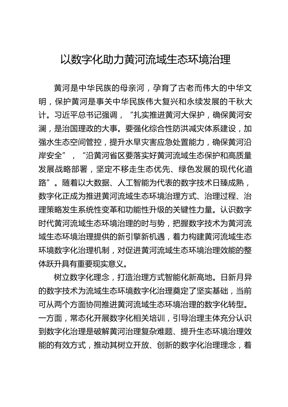 以數(shù)字化助力黃河流域生態(tài)環(huán)境治理VIP免費