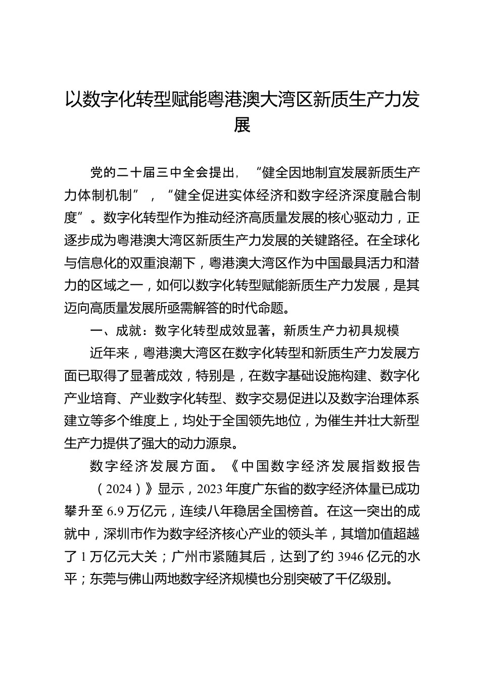 以數(shù)字化轉(zhuǎn)型賦能粵港澳大灣區(qū)新質(zhì)生產(chǎn)力發(fā)展