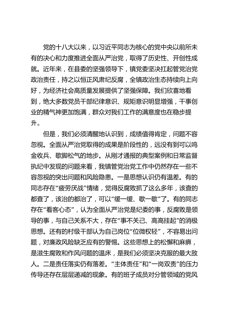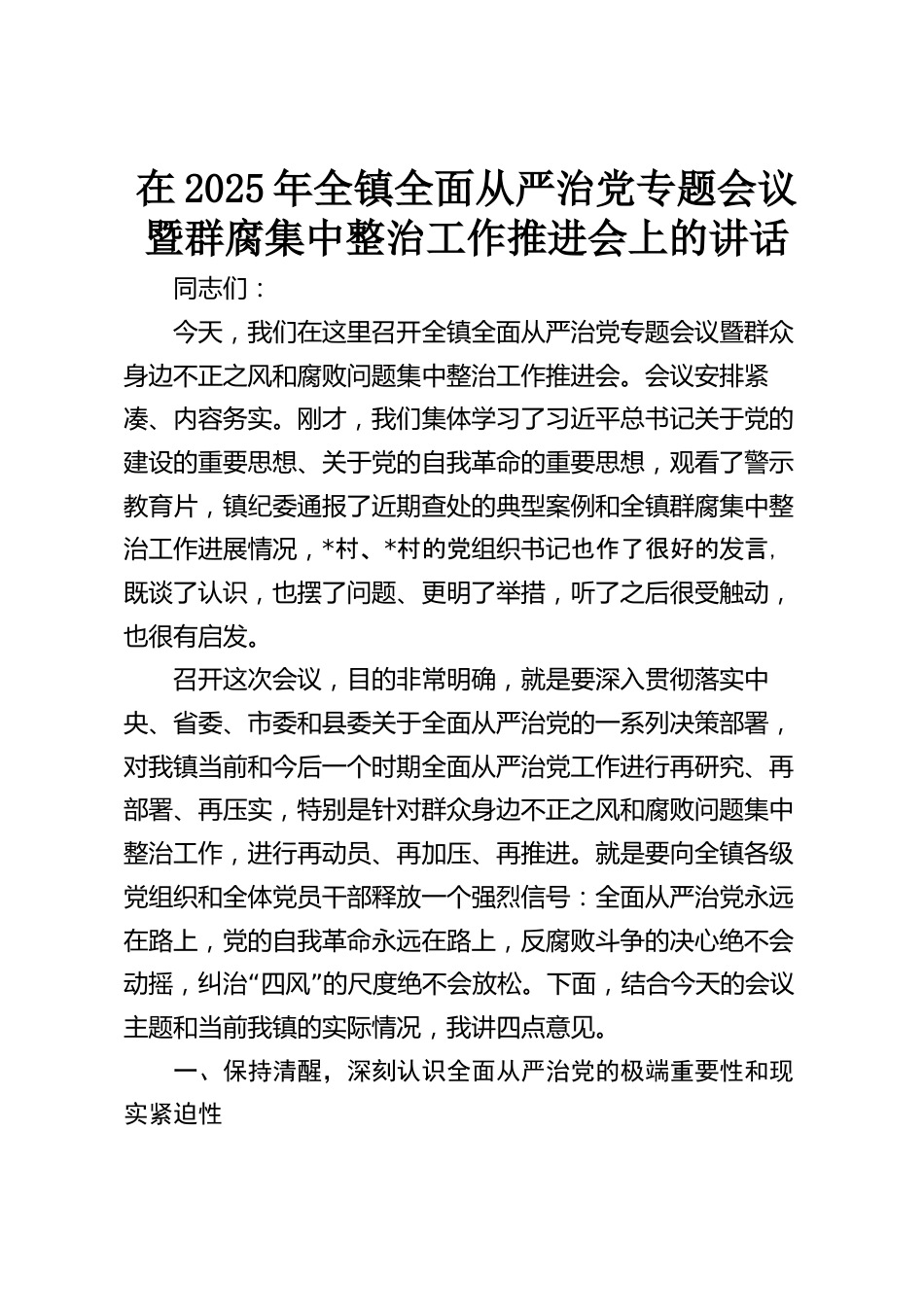 在2025年全鎮(zhèn)全面從嚴(yán)治黨專題會(huì)議暨群腐集中整治工作推進(jìn)會(huì)上的講話