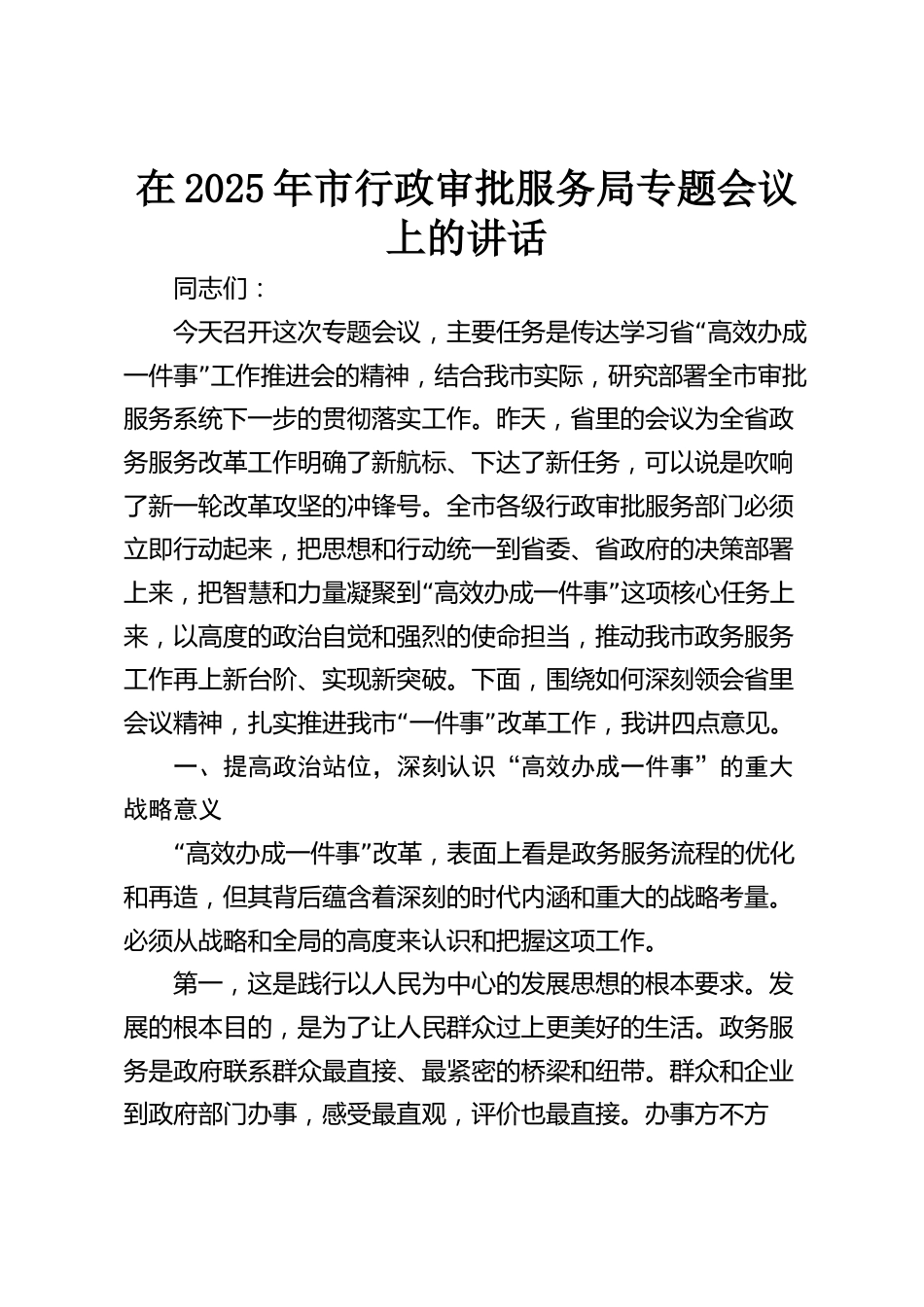 在2025年市行政審批服務(wù)局專題會(huì)議上的講話