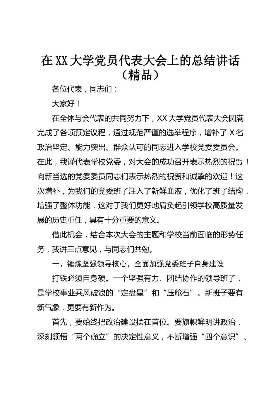 在XX大學(xué)黨員代表大會上的總結(jié)講話(精品)