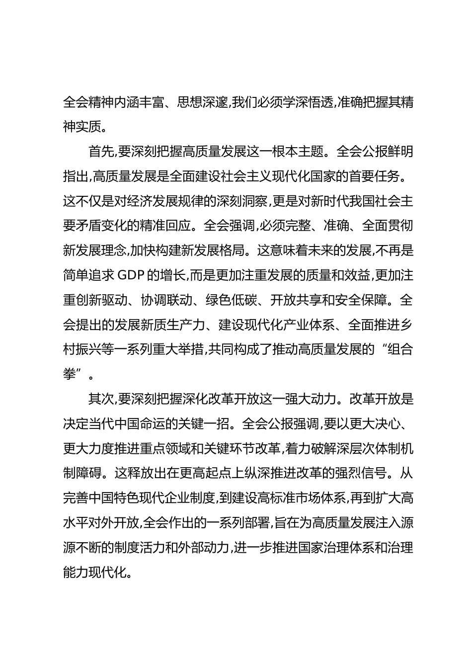 在XX單位傳達(dá)學(xué)習(xí)黨的二十屆四中全會精神專題會議上的講話(精品)同志們:今天,我們在這里召開專題會議,主要任務(wù)是傳達(dá)學(xué)習(xí)剛剛勝利閉幕的黨的二十屆四中全會精神,研究部署我單位的貫徹落實(shí)工作。黨的二十屆四中全會,是在中華人民共和國成立76周年之際,我國邁上全面建設(shè)社會主義現(xiàn)代化國家新征程、向第二個(gè)百年奮斗目標(biāo)進(jìn)軍的關(guān)鍵時(shí)刻,召開的一次十分重要的會議。全會審議通過的《中共中央關(guān)于制定國民經(jīng)濟(jì)和社會發(fā)展第十五個(gè)五年規(guī)劃和二〇四〇年遠(yuǎn)景目標(biāo)的建議》,以及習(xí)近平總書記的重要講話,是指導(dǎo)未來五年乃至更長時(shí)期我國經(jīng)濟(jì)社會發(fā)展的綱領(lǐng)性文件。剛才,相關(guān)同志已...