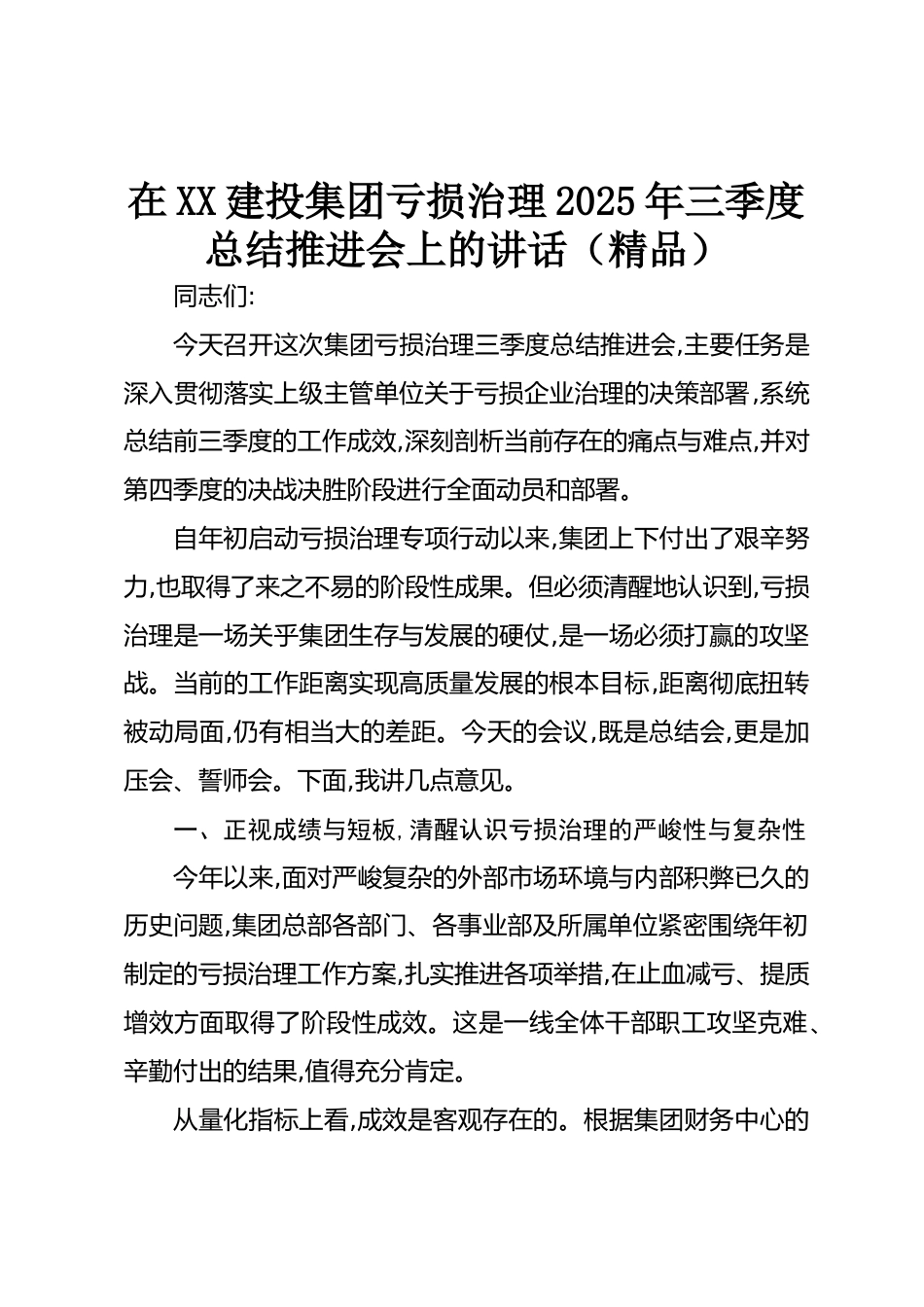 在XX建投集團(tuán)虧損治理2025年三季度總結(jié)推進(jìn)會上的講話(精品)VIP免費(fèi)