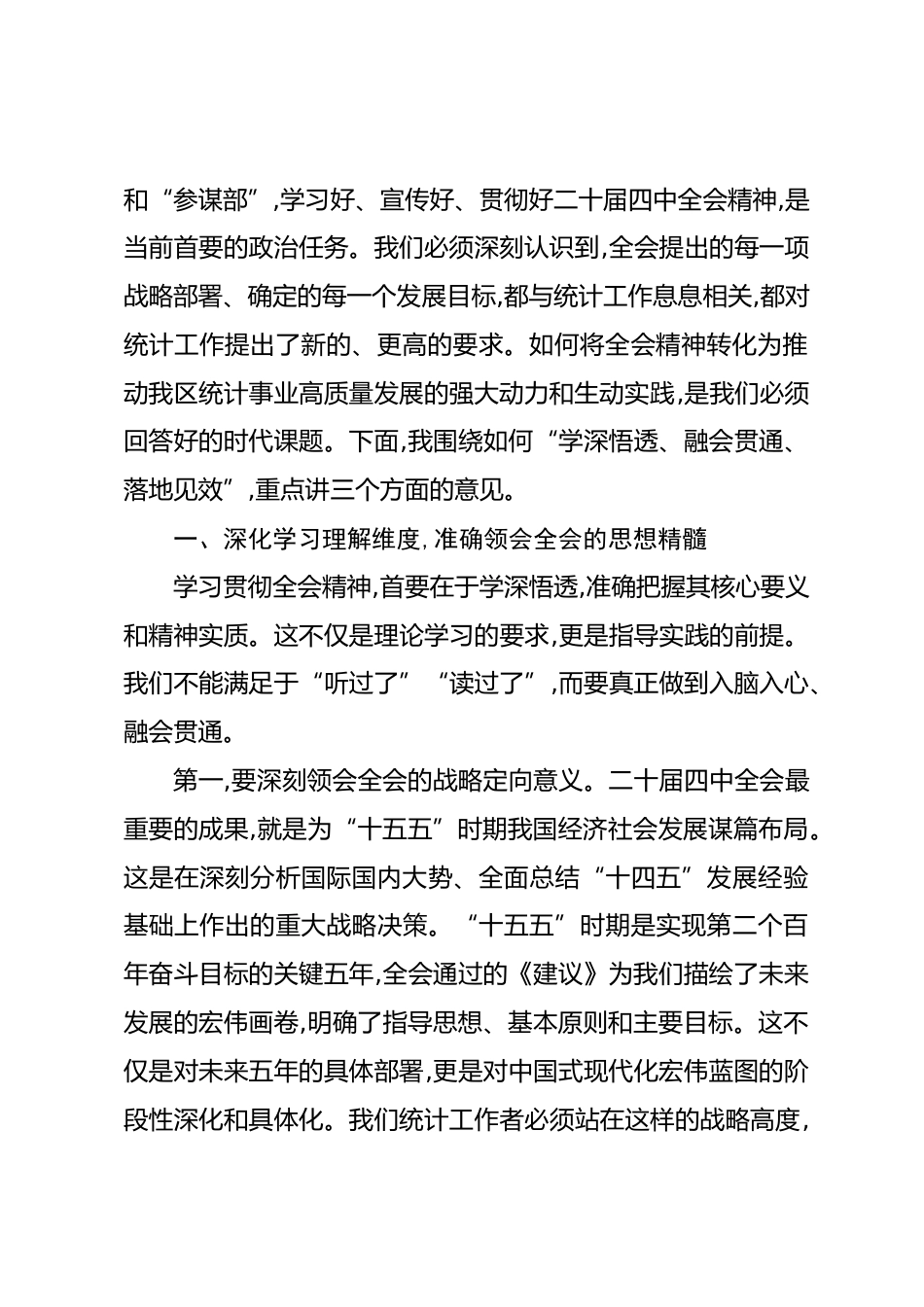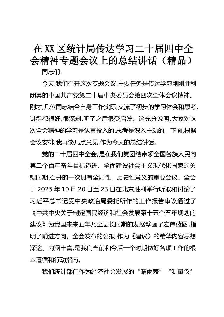 在XX區(qū)統(tǒng)計(jì)局傳達(dá)學(xué)習(xí)二十屆四中全會(huì)精神專題會(huì)議上的總結(jié)講話(精品)優(yōu)質(zhì)