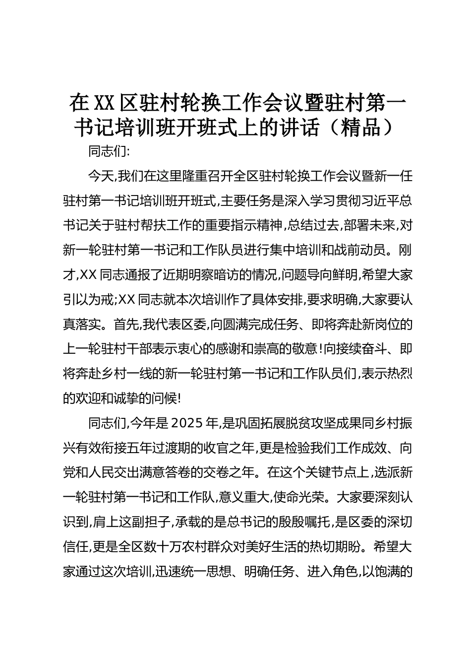 在XX區(qū)駐村輪換工作會議暨駐村第一書記培訓(xùn)班開班式上的講話(精品)