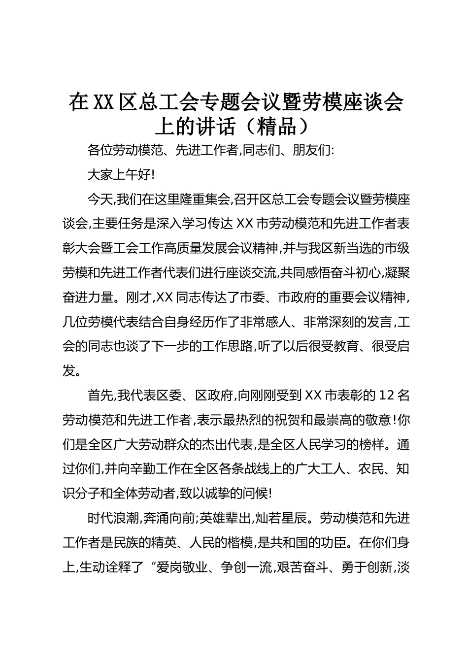 在XX區(qū)總工會(huì)專題會(huì)議暨勞模座談會(huì)上的講話(精品)