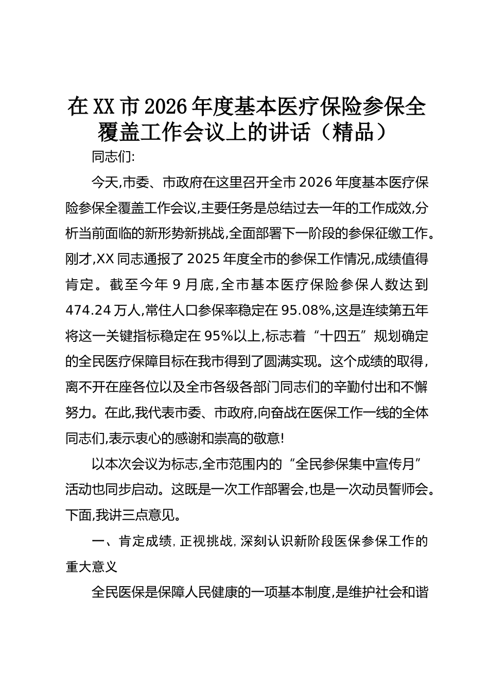 在XX市2026年度基本醫(yī)療保險(xiǎn)參保全覆蓋工作會(huì)議上的講話(huà)(精品)VIP免費(fèi)