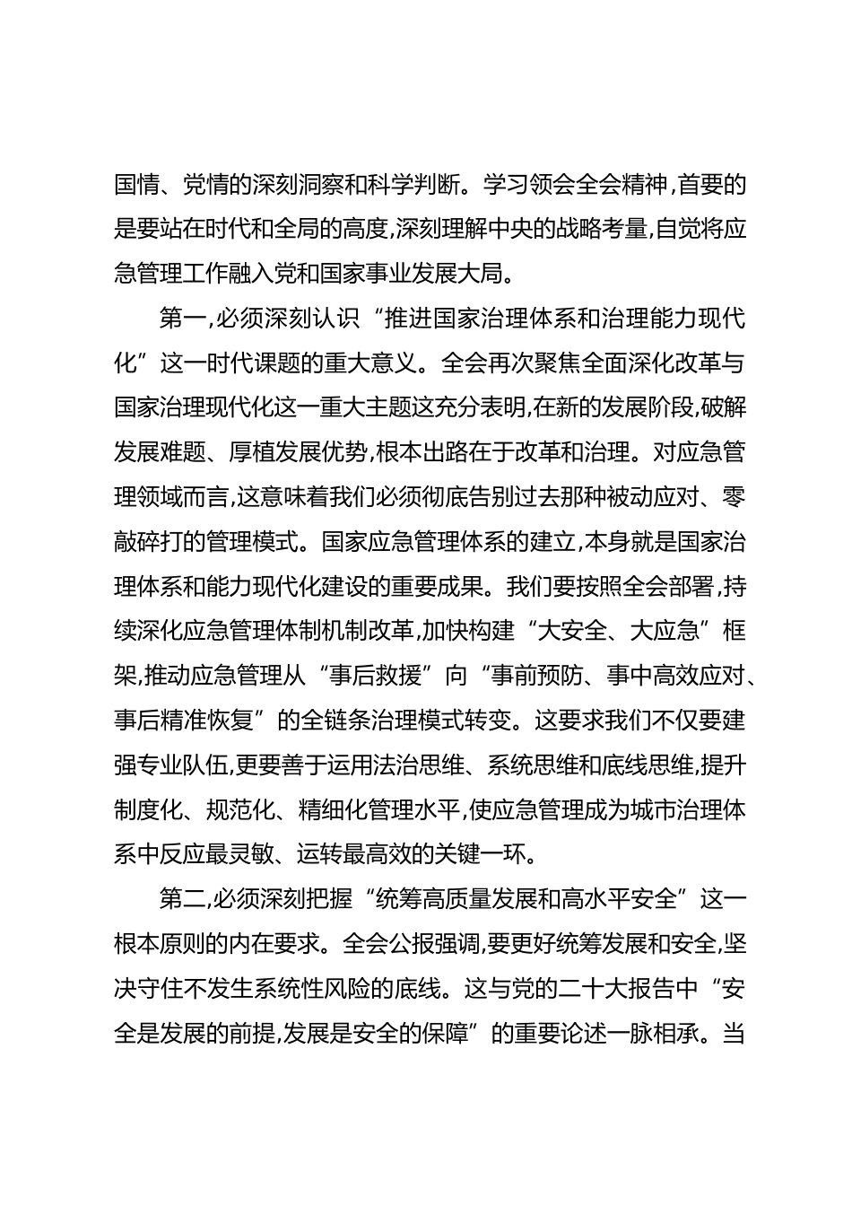 在XX市XX區(qū)應(yīng)急管理局傳達(dá)學(xué)習(xí)二十屆四中全會(huì)精神專題會(huì)議上的講話(精品)同志們:今天,我們?cè)谶@里召開專題會(huì)議,主要任務(wù)是傳達(dá)學(xué)習(xí)剛剛勝利閉幕的中國(guó)共產(chǎn)黨第二十屆中央委員會(huì)第四次全體會(huì)議精神,并結(jié)合我區(qū)應(yīng)急管理工作實(shí)際,研究部署貫徹落實(shí)的具體舉措。這次全會(huì)是在中華人民共和國(guó)成立76周年之際,也是在全面完成“十四五”規(guī)劃目標(biāo)任務(wù)、向著“十五五”時(shí)期邁進(jìn)的關(guān)鍵歷史節(jié)點(diǎn)上,召開的一次具有全局性、歷史性意義的重要會(huì)議。全局上下要迅速掀起學(xué)習(xí)貫徹?zé)岢?將思想和行動(dòng)統(tǒng)一到全會(huì)精神上來,把智慧和力量凝聚到實(shí)現(xiàn)全會(huì)確定的各項(xiàng)目標(biāo)任務(wù)上來。應(yīng)急管理部門作為...
